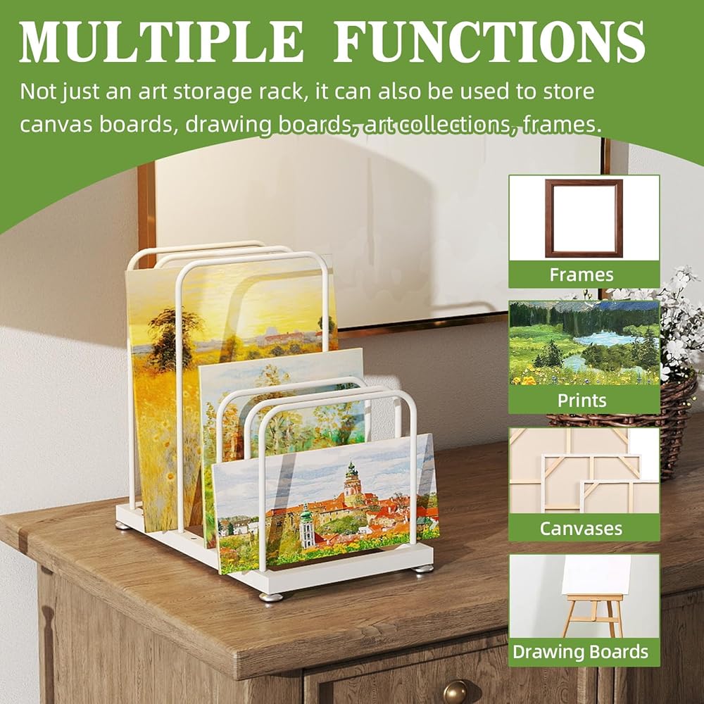 Multi Functional Use: Tabletop at storage rack can be used to store canvas boards, panels, frames, drawing boards, printed materials, paper mats, etc. Suitable for use in studios, art galleries, museums, and homes