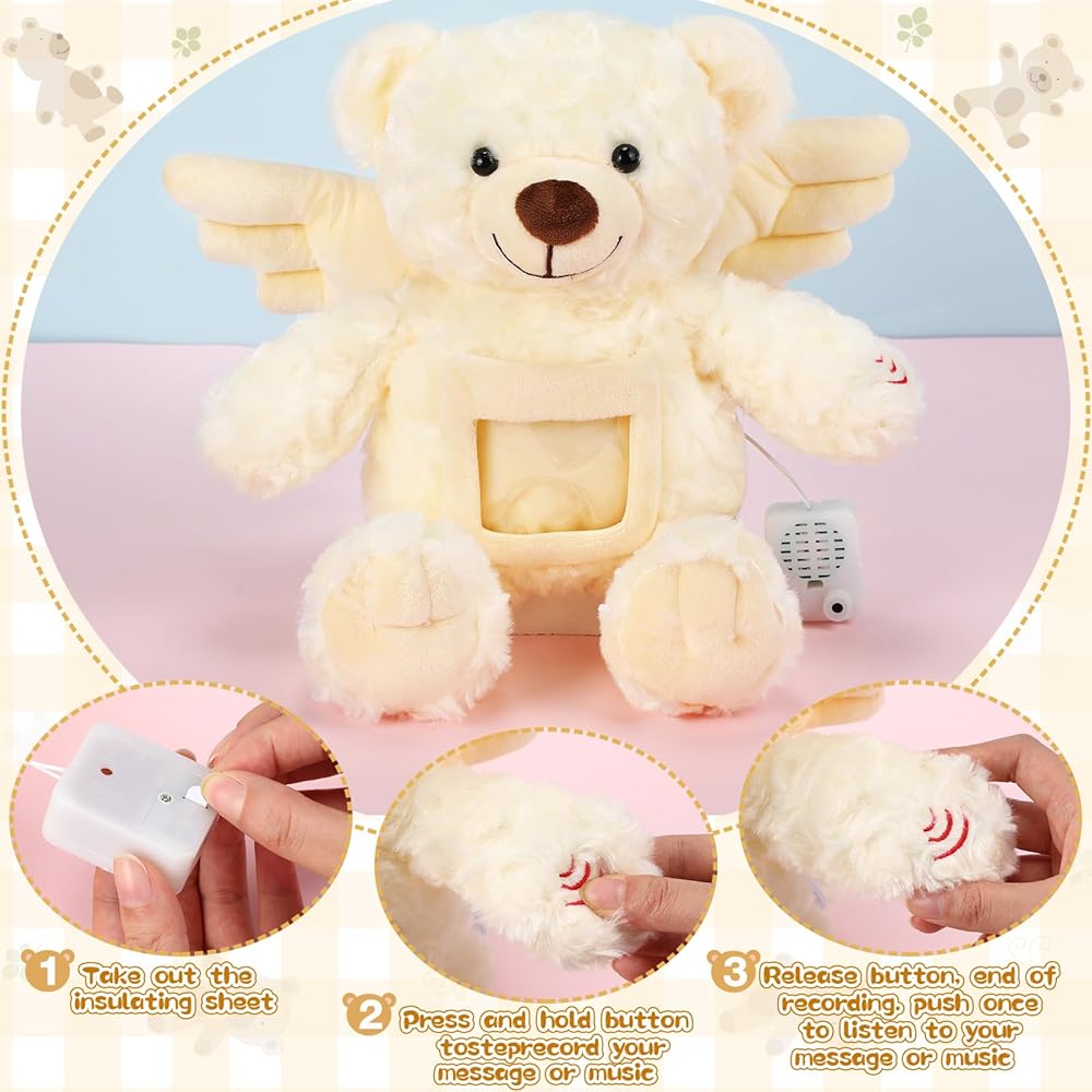 Warm Daily Companion: this angel bear with recorder introduces a sense of companionship to its owners; Its comforting presence and cozy touch will certainly be a calming and pleasant comfort during bedtime, long car rides, or just casual daily moments; The soft and adorable memorial bear sincerely reminds people that heaven is not far away, which is a nice way to make your loved ones feel close and remember their loved ones