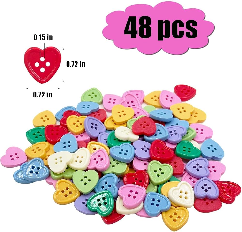 Heart Buttons: You will receive 48 mixed color heart-shaped buttons.Each button has 4 holes and measures 0.72inches (18mm), providing plenty of buttons for your projects