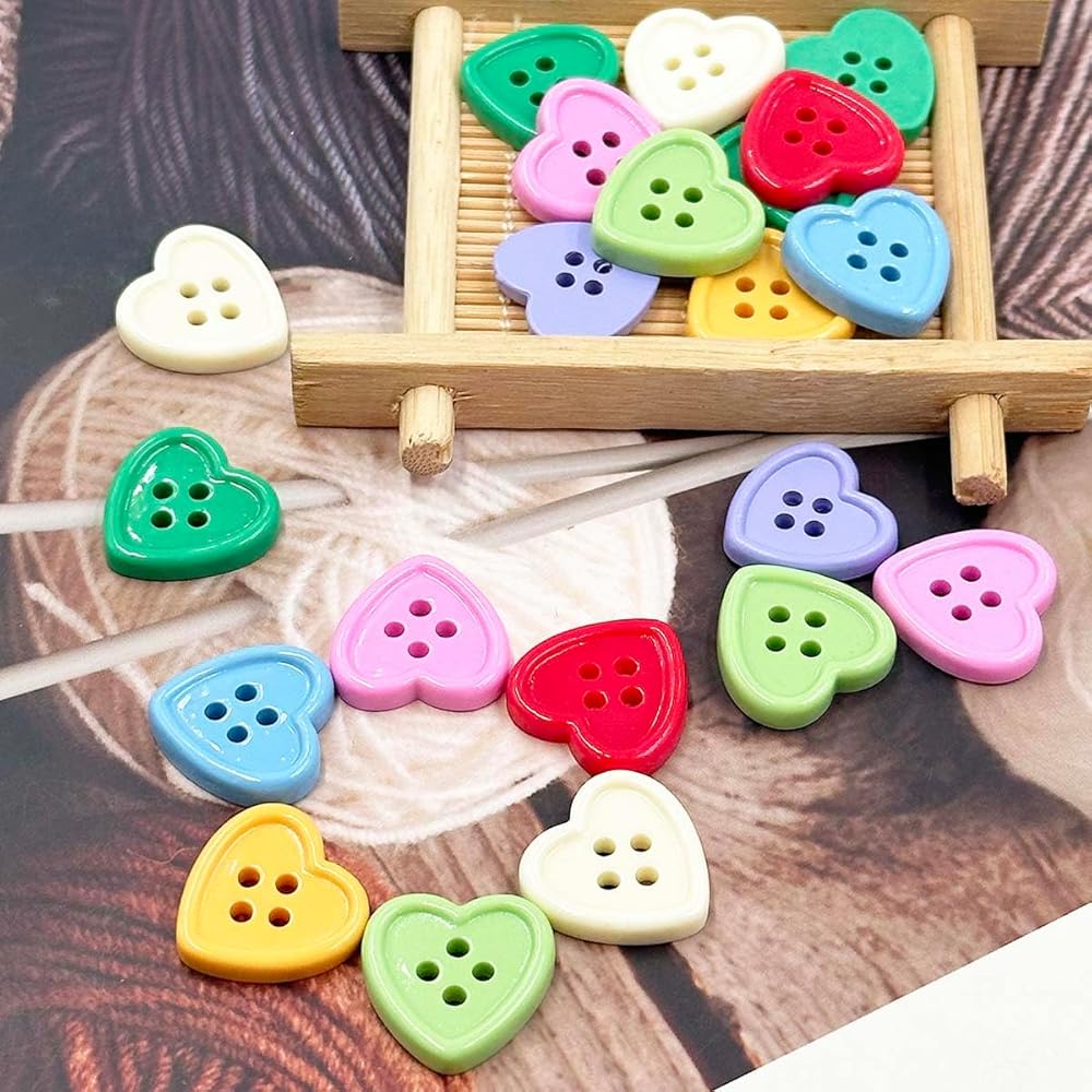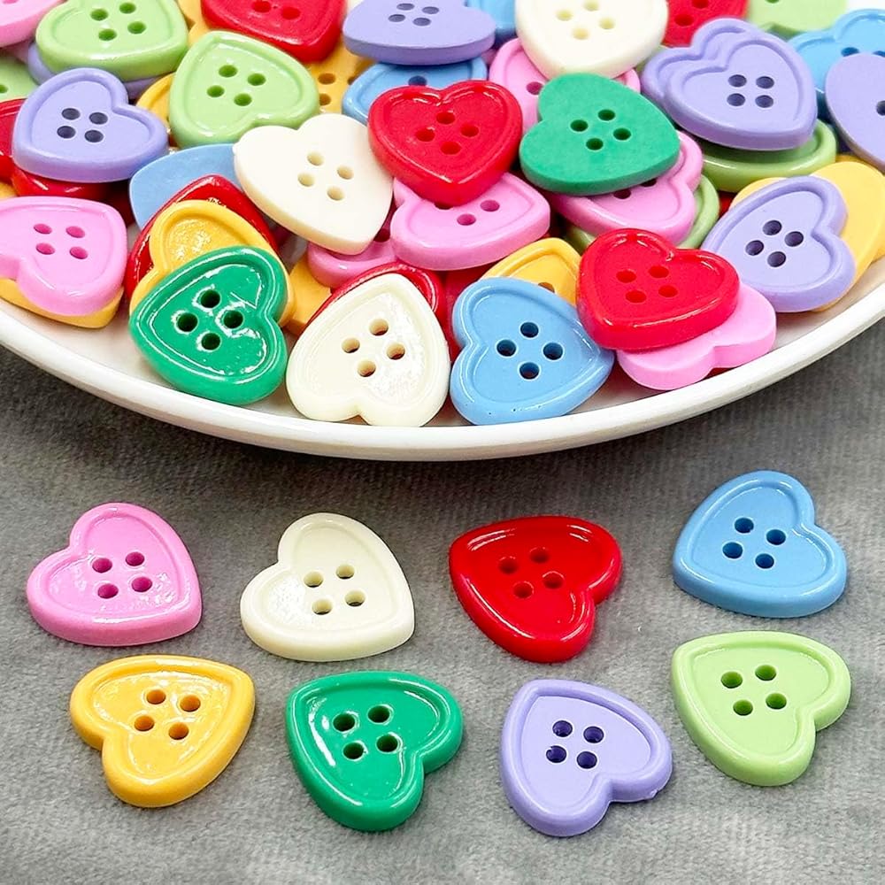 Buttons for Craft : These heart-shaped buttons are made from high-quality resin, which is hard, durable, wear-resistant, and unlikely to break
