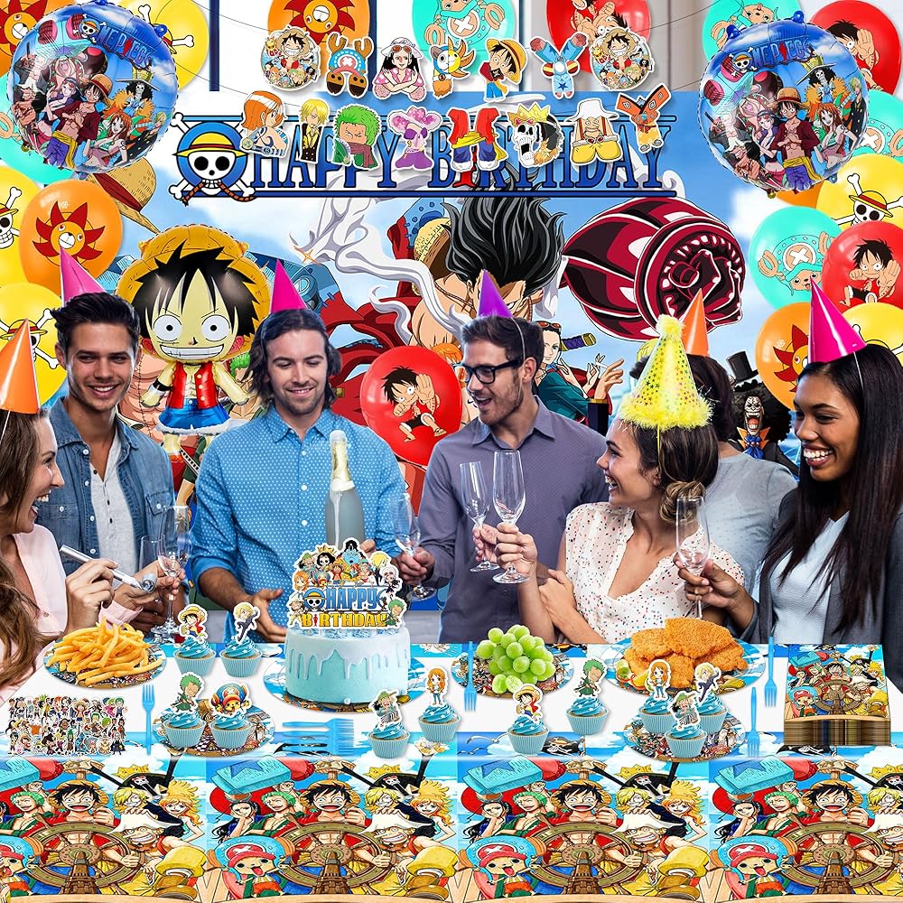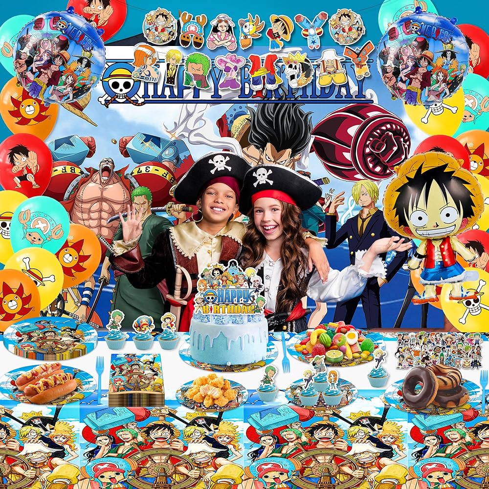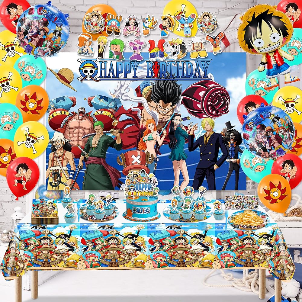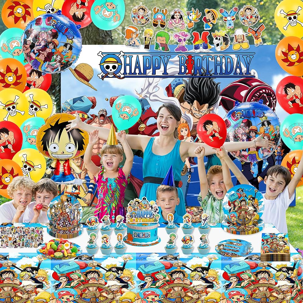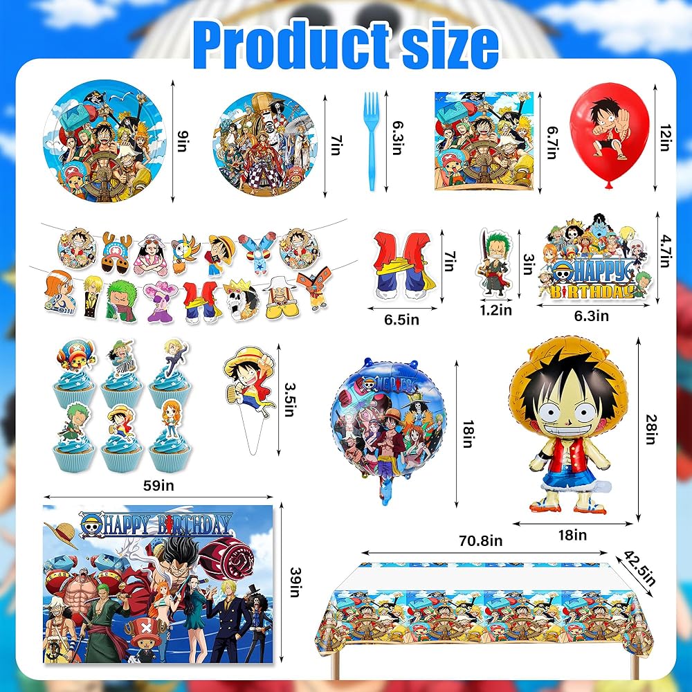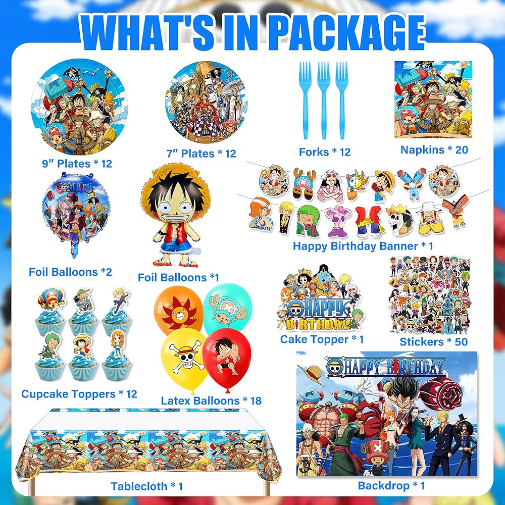 Oaroily Party Decorations, Cartoon Party Set For 12 People Large Set Includes: Pull Flag, Large Plug, Small Plug, Latex Balloons, Backdrop 150 * 100cm, Tablecloths, 7-Inch Plate, 9-Inch Plate, Paper Towels, Blue Forks, Cartoon Stickers 50, Garden-Shaped Aluminum Balloons, Cartoon Characters Aluminum Balloons