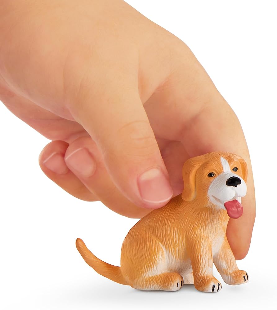Terra by Battat toy dog and doghouse playset is a great companion for collectors of miniature figurines! Lovingly created with accurate and realistic details, The tiny puppy figurines sit on their paws and wag their tails like happy dogs. And these 2 toy dogs sure do look happy! Not only do they have a spacious toy dog house, but they also have a little water bowl, toy bone, and storage container for extra treats and dog toys! Who let the dogs out? Terra by Battat with their adorable animal toys for kids!