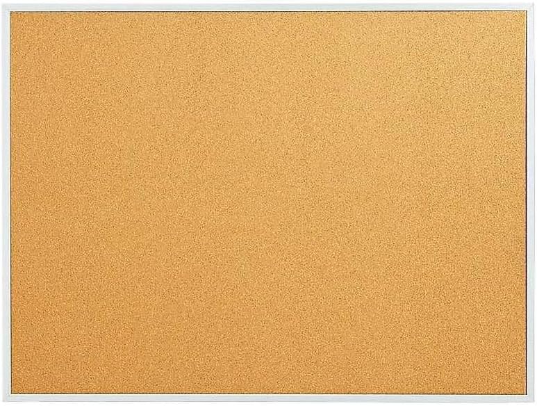 A cork bulletin board is a convenient place to post documents. 3'W x 2'H board with aluminum finish. Aluminum frame adds a touch of contemporary professionalism. Natural cork surface is a solid choice for display and organization. Mounts vertically or horizontally. Self-healing surface ensures lasting use and eliminates unsightly pin holes. Accepts thumbtacks, pushpins, or staples.