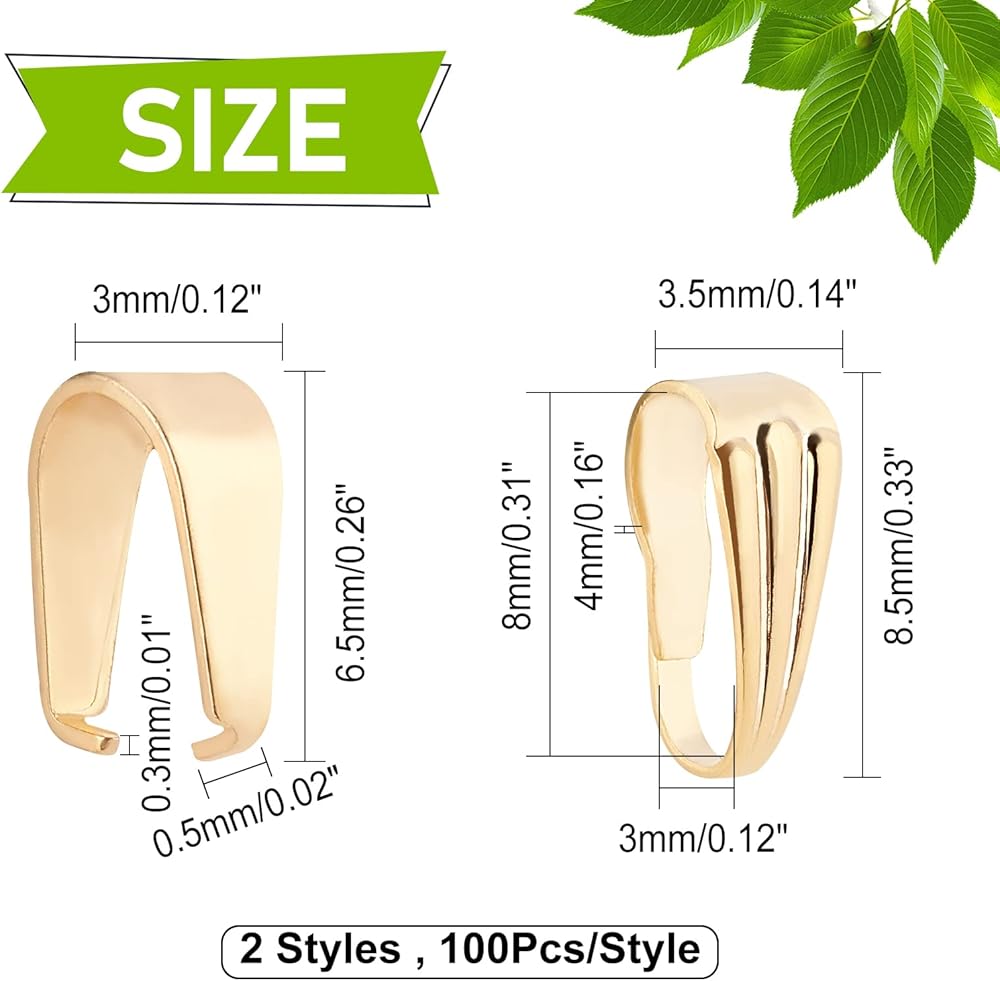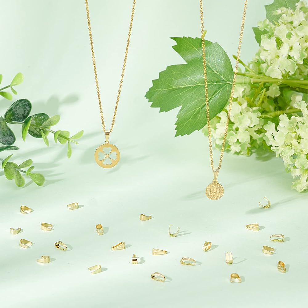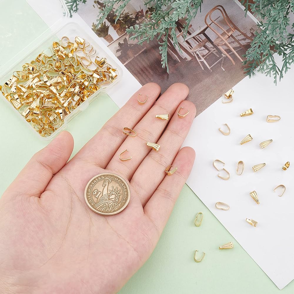 DICOSMETIC 200Pcs 2 Styles Snap on Bails Stainless Steel Pinch Clip Bails Pendant Clasps Golden Dangle Charms Connectors Clasps for Necklace Jewellry Making and DIY Craft