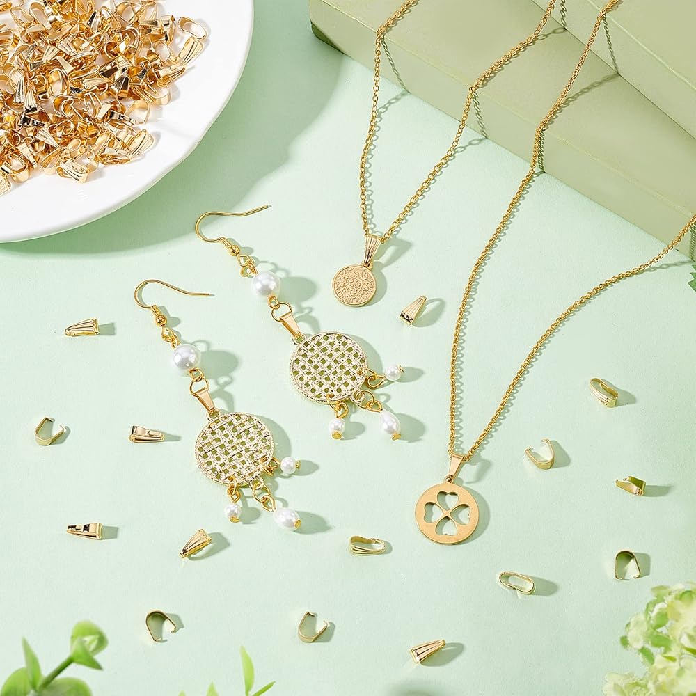 Wide Usage: These pinch bails are great for beads, crystals, gemstones and some other pendants to DIY different styles of necklaces or bracelets,easy to make a shiny and eye-catching jewelry.