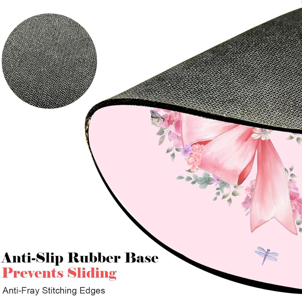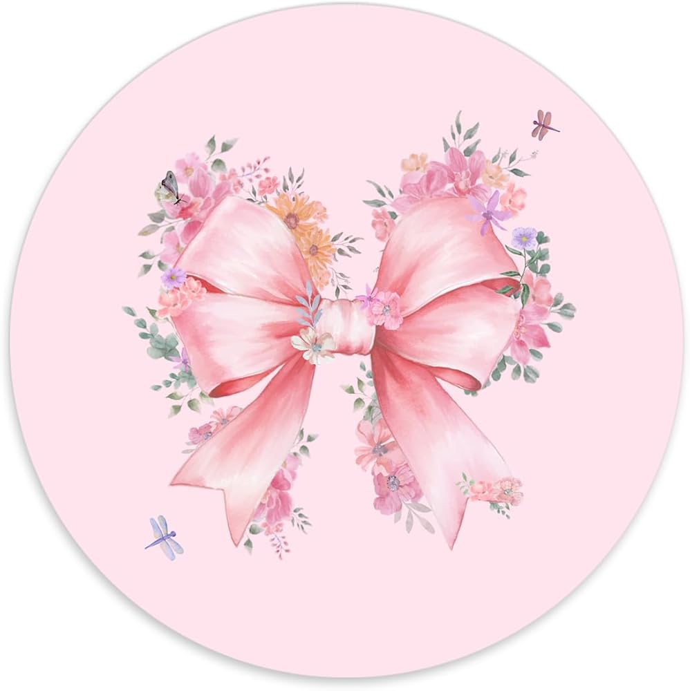 Coquette Pink Bow Mouse Pad, Girly Trendy Preppy Round Mouse Pad, Teen Girl Gifts, Aesthetic Non-Slip Rubber Base Mousepads for Home Office Dorm Desk Decor, 8.7 x 8.7 Inch
