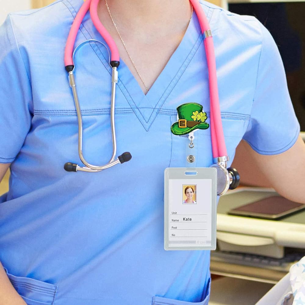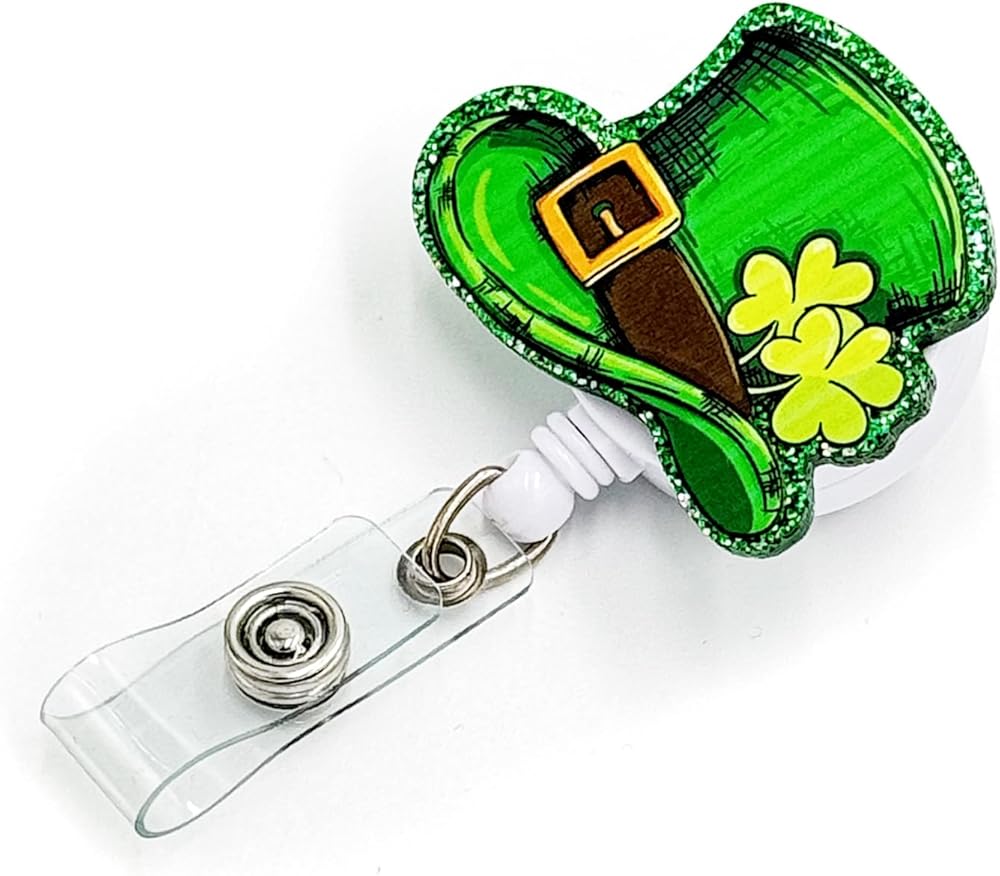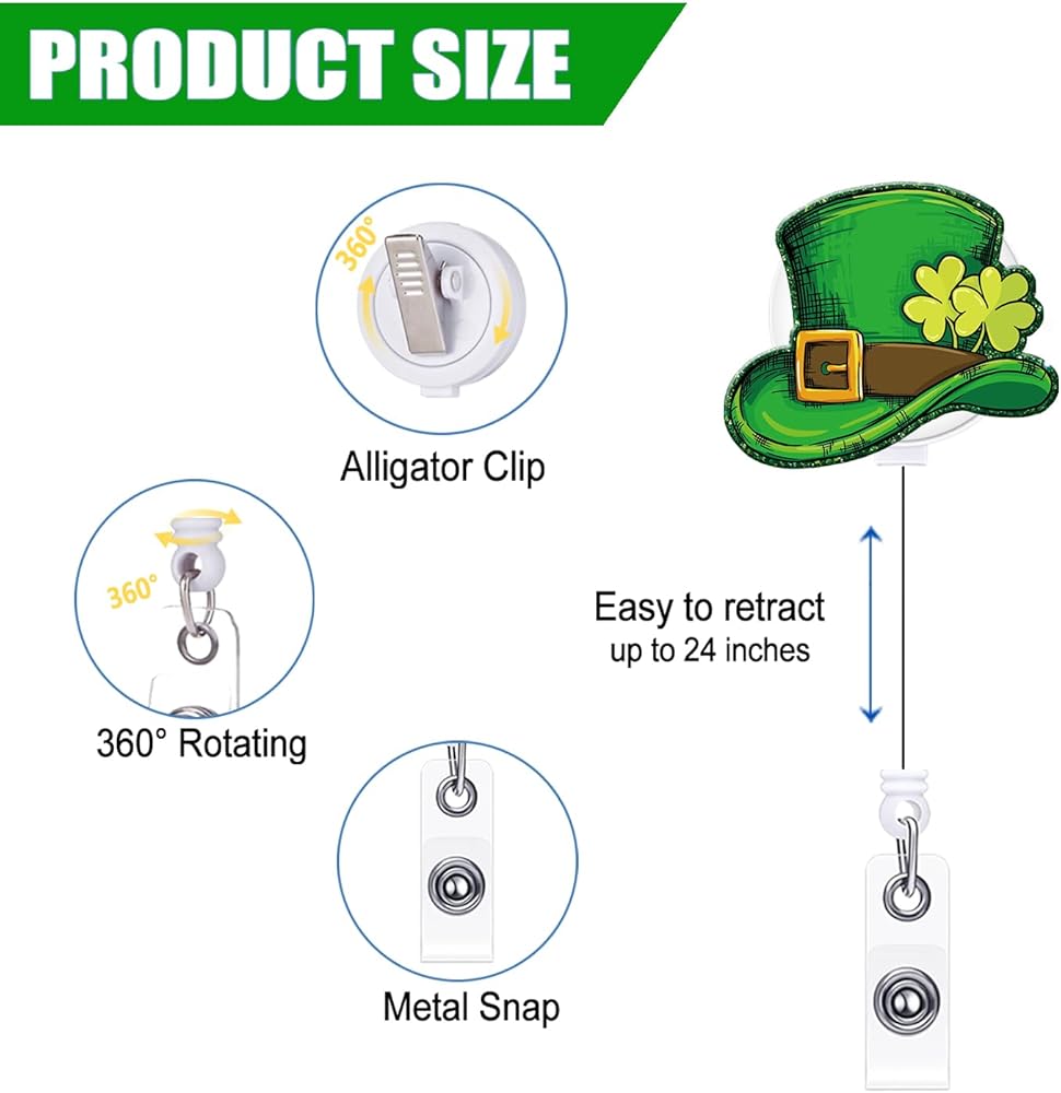St Patricks Day Badge Reel Retractable with Alligator Clip Shamrock Hat Badge Holder Acrylic Name Tag Clip for Holiday Nurses Nursing Teachers Students