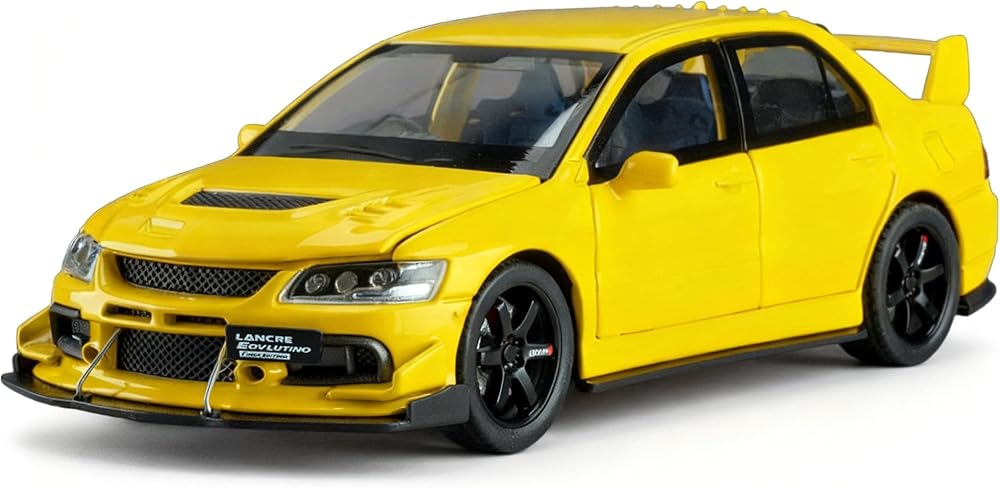 High quality toy car models:The model car is perfect for Lancer Evolution obsessed boys. Toy car opening doors and engine compartment, the model car has movable parts, lights and hood open to see the motor.