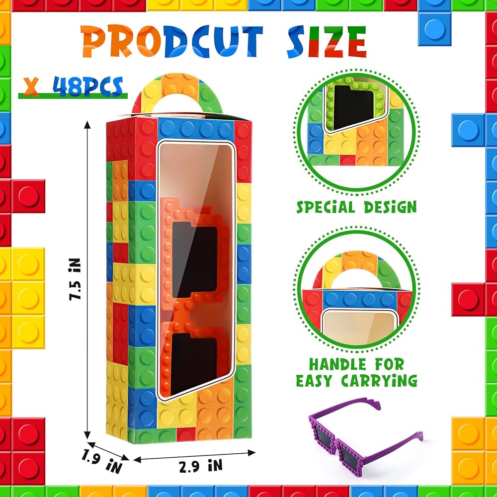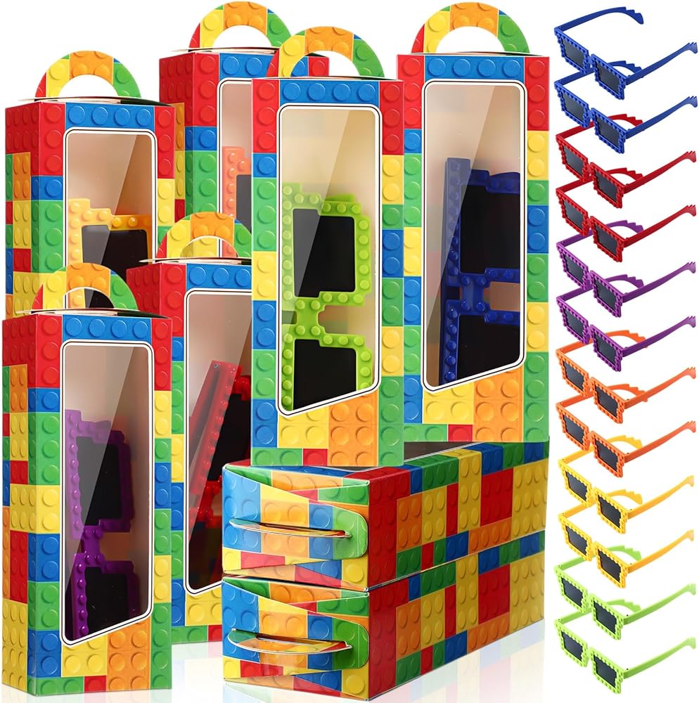 Building Blocks Pack in the Fun: you will receive 12 building blocks party gift boxes and 12 building bricks party sunglasses, which are suitable for various party celebrations and can be applied as block themed birthday parties, carnival parties, block party games, Christmas gifts, Add party atmosphere