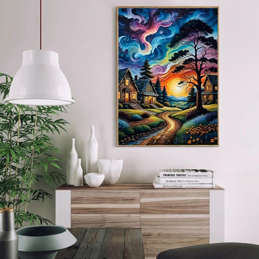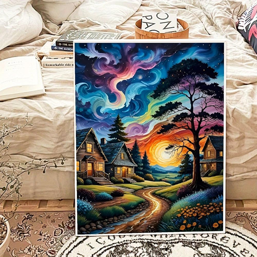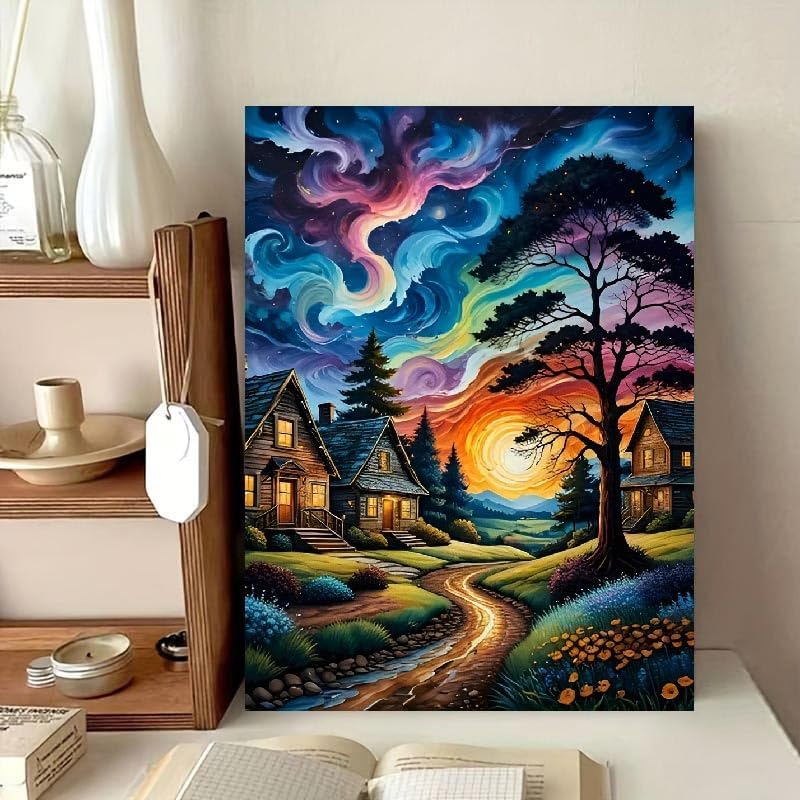 Starry Paint By Numbers Kit for Adults, Country Night Paint By Number Kits on Canvas for Beginner, Moon Acrylic Diy Oil Painting Kit Adults' Paint-By-Number Kits for Home Wall Decor 16x20 Inch