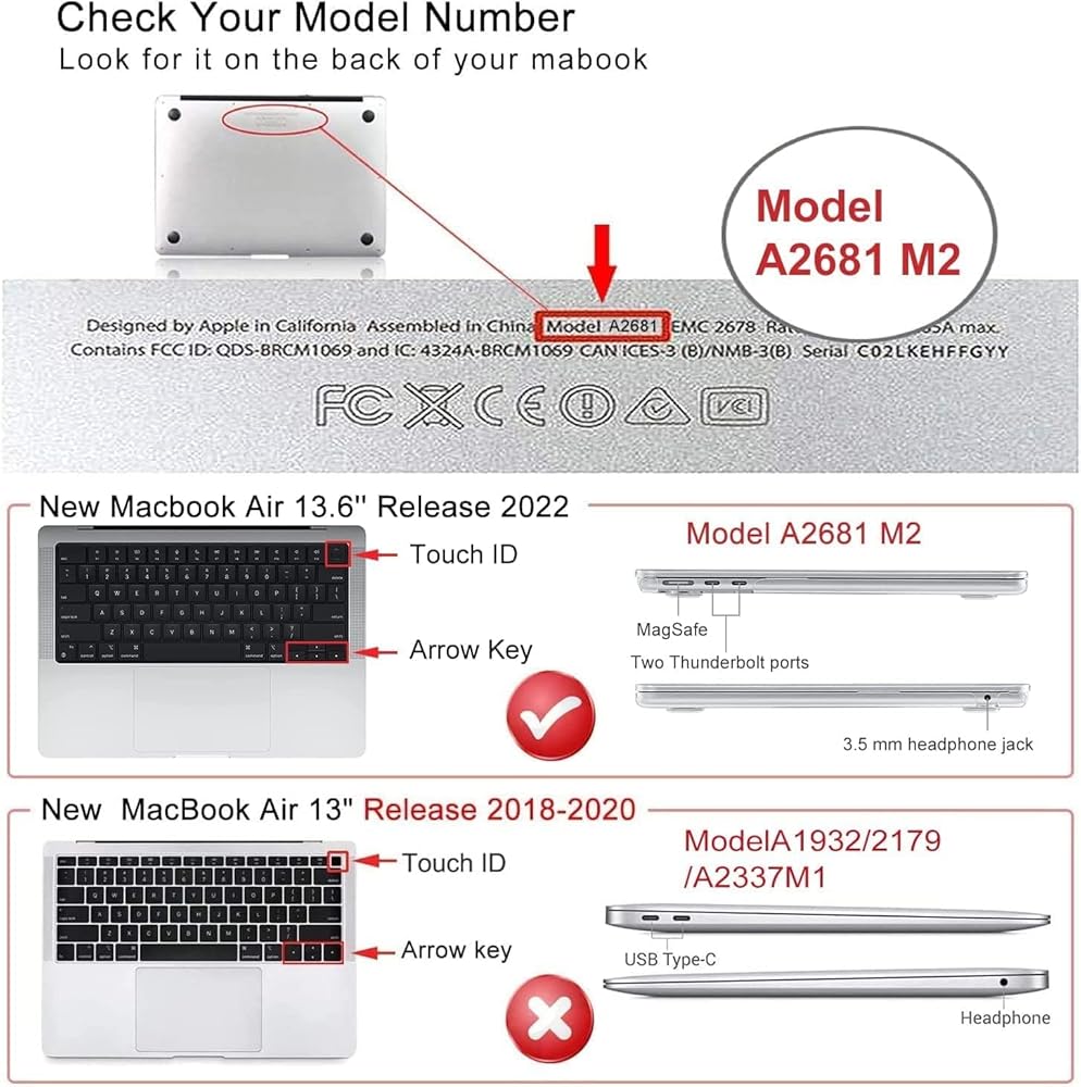 Check your Model - ONLY for Mac book air M2 case 13.6 inch 2022 Release with Touch ID (Models: A2681)