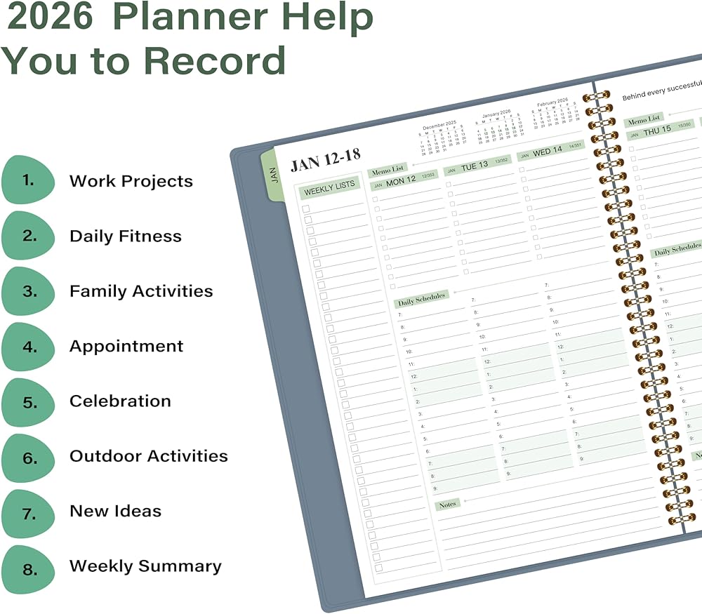 📝 2025-2026 PLANNER - This 2025-2026 planner weekly and monthly dates from JUL 2025 to JUN 2026, the size this planner: 8.47'' x 11.38'', which is a great size for your daily planning. The soft faux leather cover of the schedule planner notepad makes it easier to put into backpacks, handbags, and without leaving any traces on the cover.