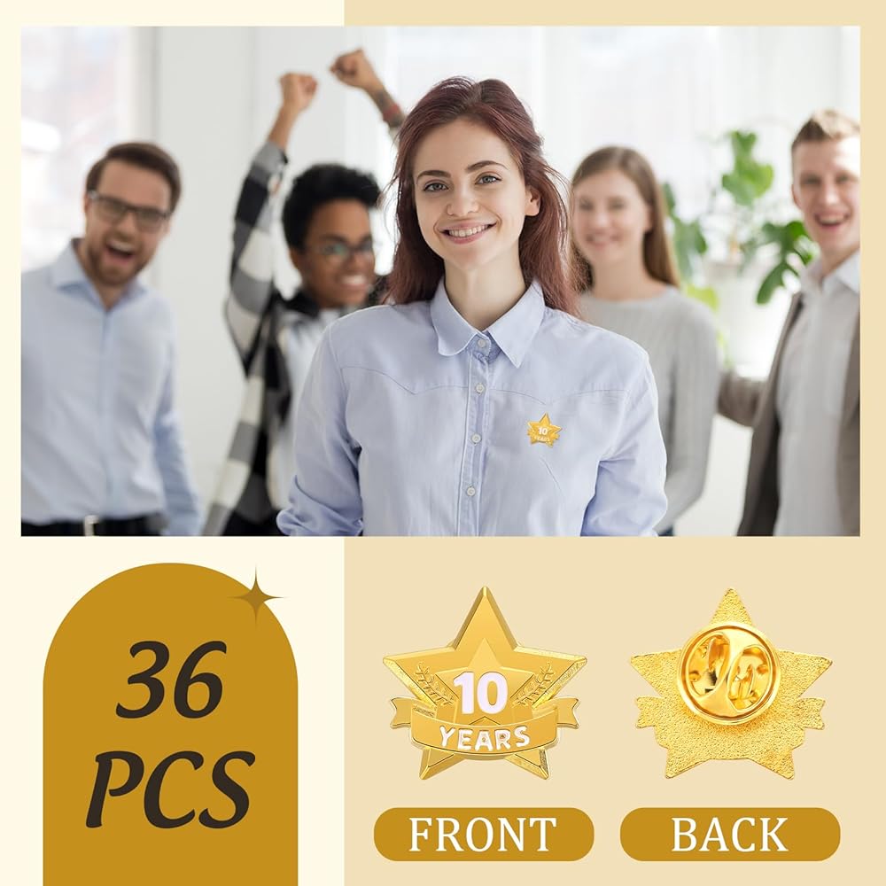 Plenty for All with a Package of 36: this package comes with 36 year service award star lapel pins, an ample quantity to cater to most occasions or events; They are made of zinc alloy, adopting die casting paint process, about 0.87 x 0.87 inches/ 2.2 x 2.2 cm and 0.08 inches/ 2 mm in thickness