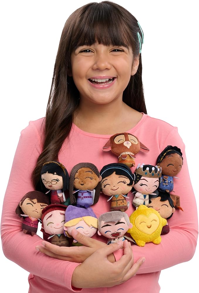 Every star is lucky when it holds a surprise Disney Wish Mini Collectible plush doll. This pearlized gold capsule with its heart-shaped, smiling face, is sculpted to look like Star from Disney's animated feature, Wish. Hiding inside is one of twelve cuddly characters from the movie. Who will it be? Each enchanting, stylized Disney plushie is made of super-soft, mixed fabrics with embroidered and appliqued details. At 3.5 inches tall, it's the perfect size for little ones to clutch and carry, and for Disney fans to display as part of their collection. Discover and collect all 12: Asha, Star, Valentino, Dahlia, Bazeema, Hal, Gabo, Safi, Dario, Simon, King Magnifico, and Queen Amaya, each sold separately. This Disney kids' toy makes a great stocking stuffer, party favor, or gift for kids and fans ages 2 years and up.