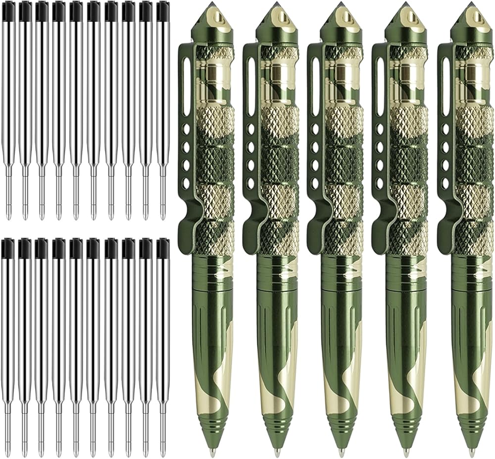 Origin-Joy Camouflage Tactical Pen Self Defense, Military EDC Tactical Enforcement Gear, Personal Survival Cool Metal Pen Gifts for Men, Police and Army (AL01, 5 PCS)