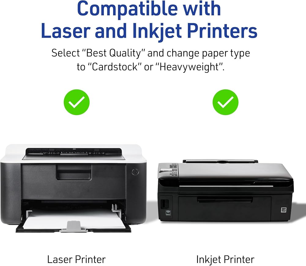 • Avery cards with patented Sure Feed technology provide a more reliable feed through your printer, reducing misalignments and jams