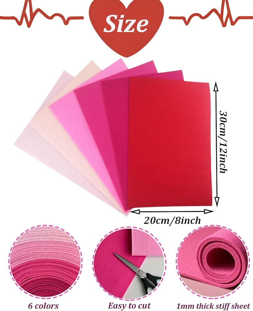 Bright Color: Our pink felt fabric sheets come in a set of 6 kinds of pink, with 4 sheets of each color, providing a variety perfect for all your crafting needs and everyday projects.
