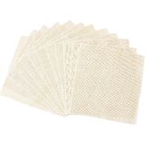 CleverDelights ivory 12 inch burlap squares. 12 pack. Tight weave jute fabric with stitched, finished edges for a clean and professional look. Add some rustic charm to your home décor, wedding receptions, dinner and kitchen tables, Thanksgiving and holiday decorations, craft projects, and gifts with these 12" off-white burlap squares! Made from real jute burlap, not polyester-based or cotton-based faux-burlap fabric. These 12” burlap sheets are made from durable heavyweight fibers and are biodegradable and eco-friendly. Since the burlap is made from jute plant fibers, fresh jute burlap fabrics may have a mild, natural plant odor. To remove any undesired odors, the most effective method is to air out the burlap (preferably in sunlight) prior to use. Please visit our store to see our full selection of burlap squares, as well as our burlap ribbon, bags, and fabric roll offerings in various sizes and colors. Thanks for shopping with us! Care instructions: Spot clean only. Iron low with a pressing cloth.