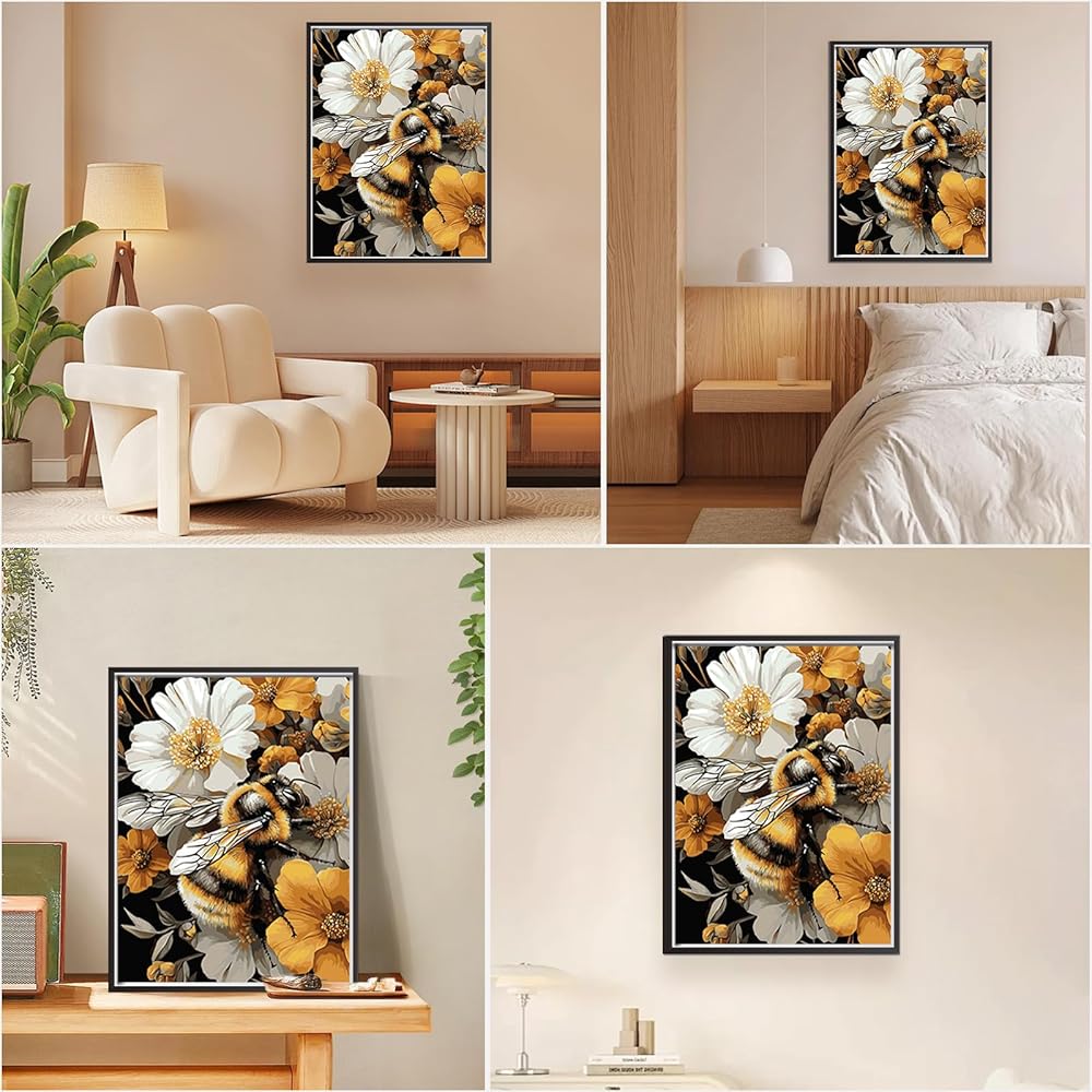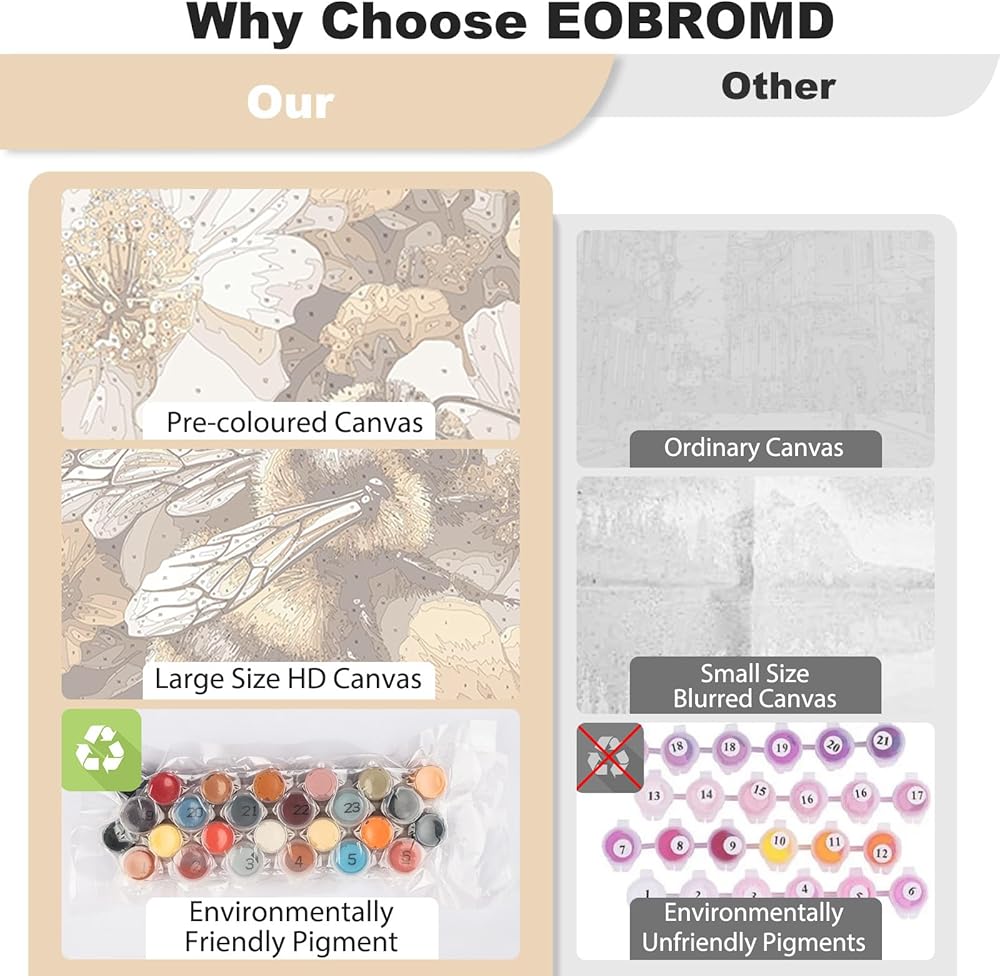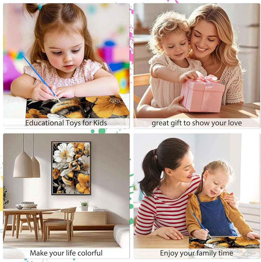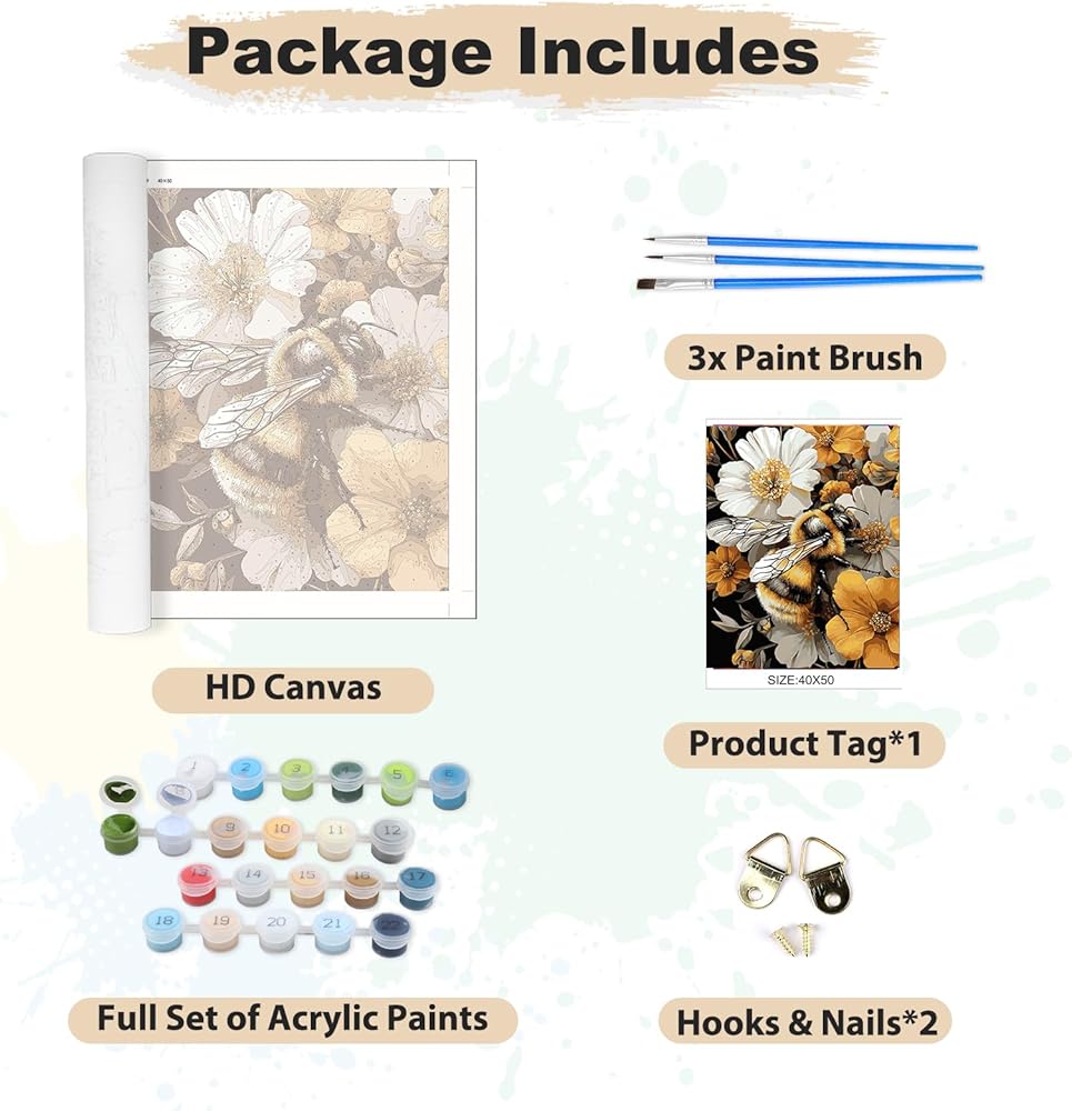 EOBROMD Paint by Numbers Kits for Adults Bee Flowers, DIY Kits Crafts for Beginner on Canvas, 3 Paint Brushes and Acrylic Paint for Home Decor 16x20inch(Without Frame)