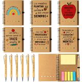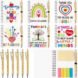 ANGOLIO 12Pcs Teacher Appreciation Gift Bulk Thank You Gifts Inspirational Spiral Notebook with Sticky Notepad Motivational Bamboo Pens for Teacher's Day School Office Appreciation Birthday Supplies