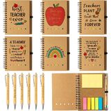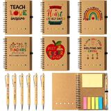 What You'll Get: You'll receive 6 teacher appreciation notebooks (6 unique styles) and 6 Thank-You teacher bamboo pens (6 unique styles). The notebooks measure 5.3 x 4.1 inches (13.5 x 10.4 cm), and the pens are 5.3 inches (13.6 cm) long. These compact sizes make them easy to carry around.