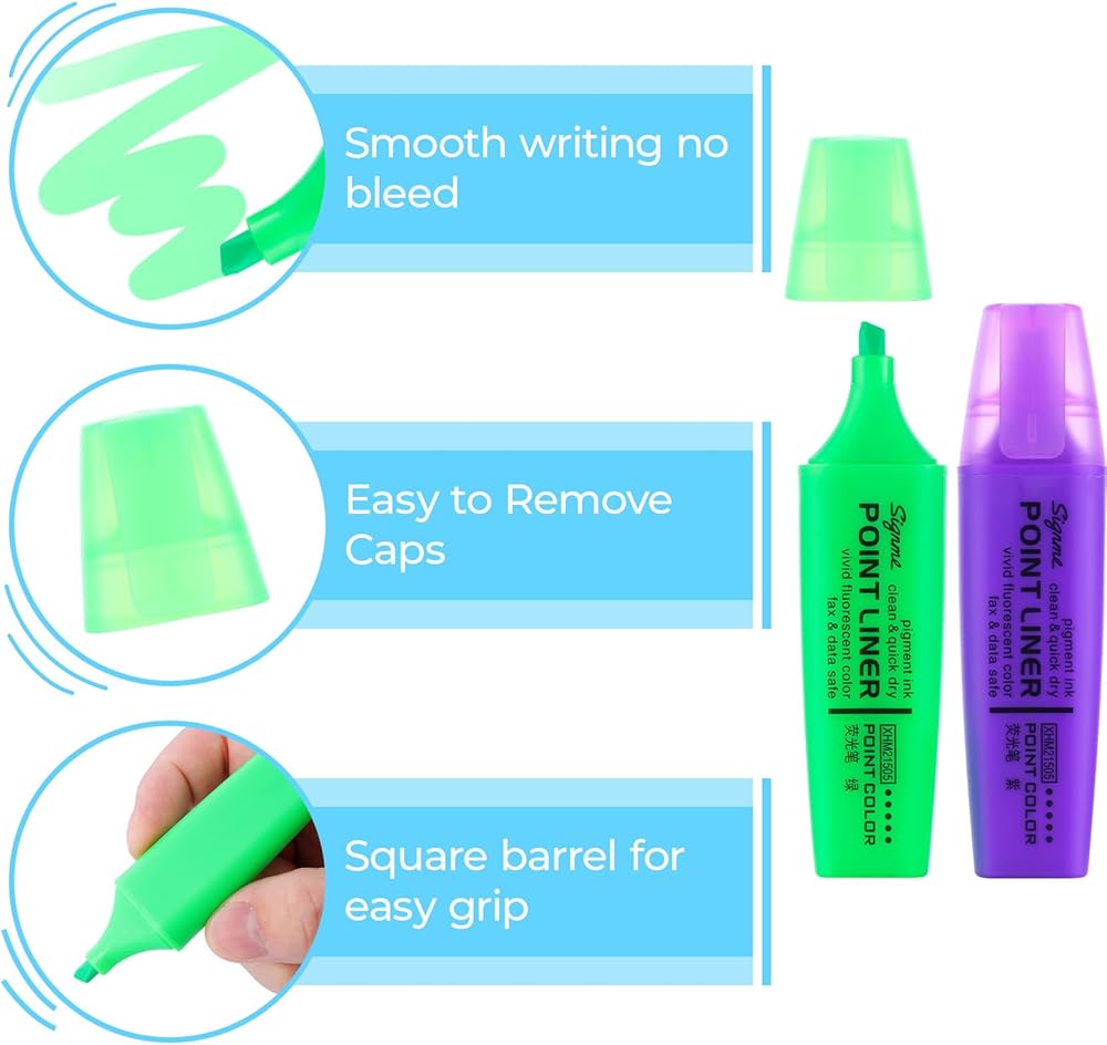 【Smooth Writing Experience】These highlighters are made with a double soft chisel tip that allows you to write comfortably, wear and smoothly without paper dirty.