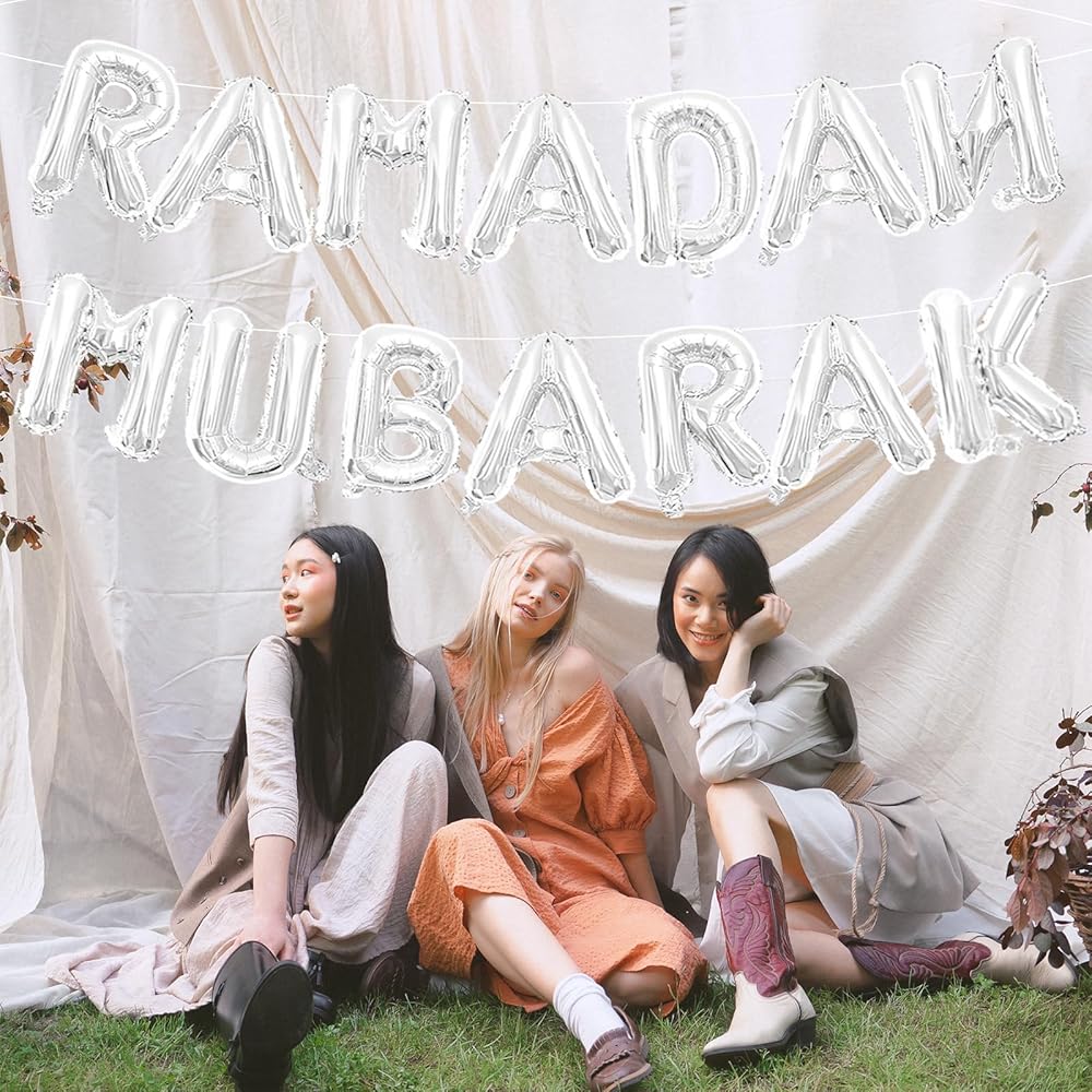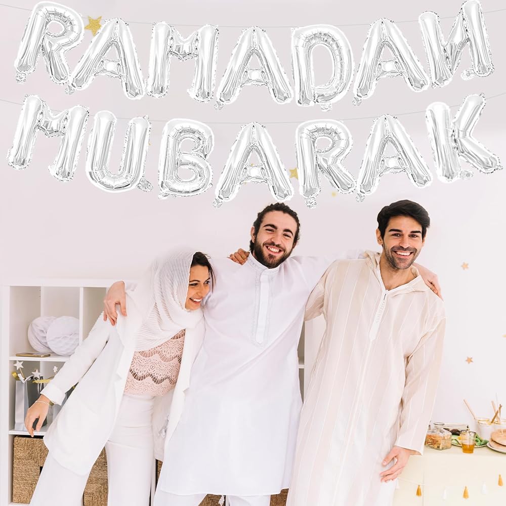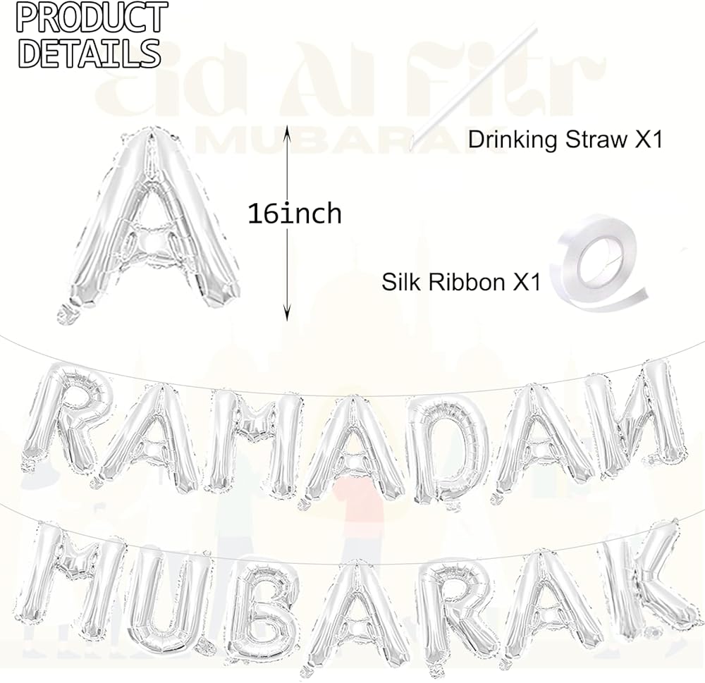 COMPLETE RAMADAN BANNER SET: This set includes 16-inch letter balloons spelling out 'RAMADAN MUBARAK,' providing the perfect decoration to celebrate the holy month of Ramadan and festive Eid gatherings.
