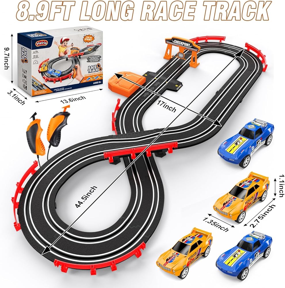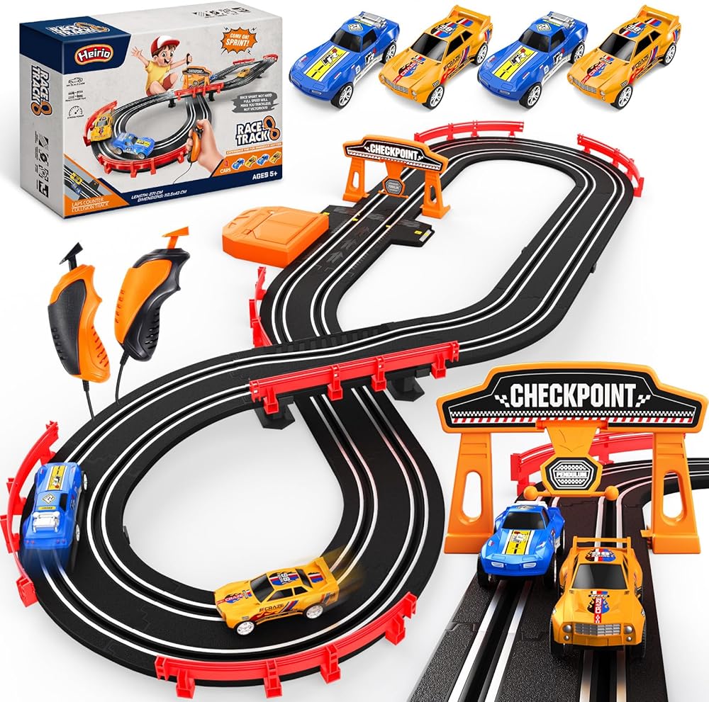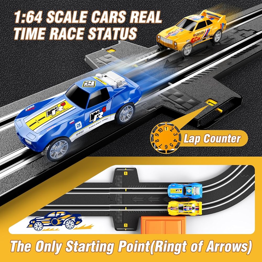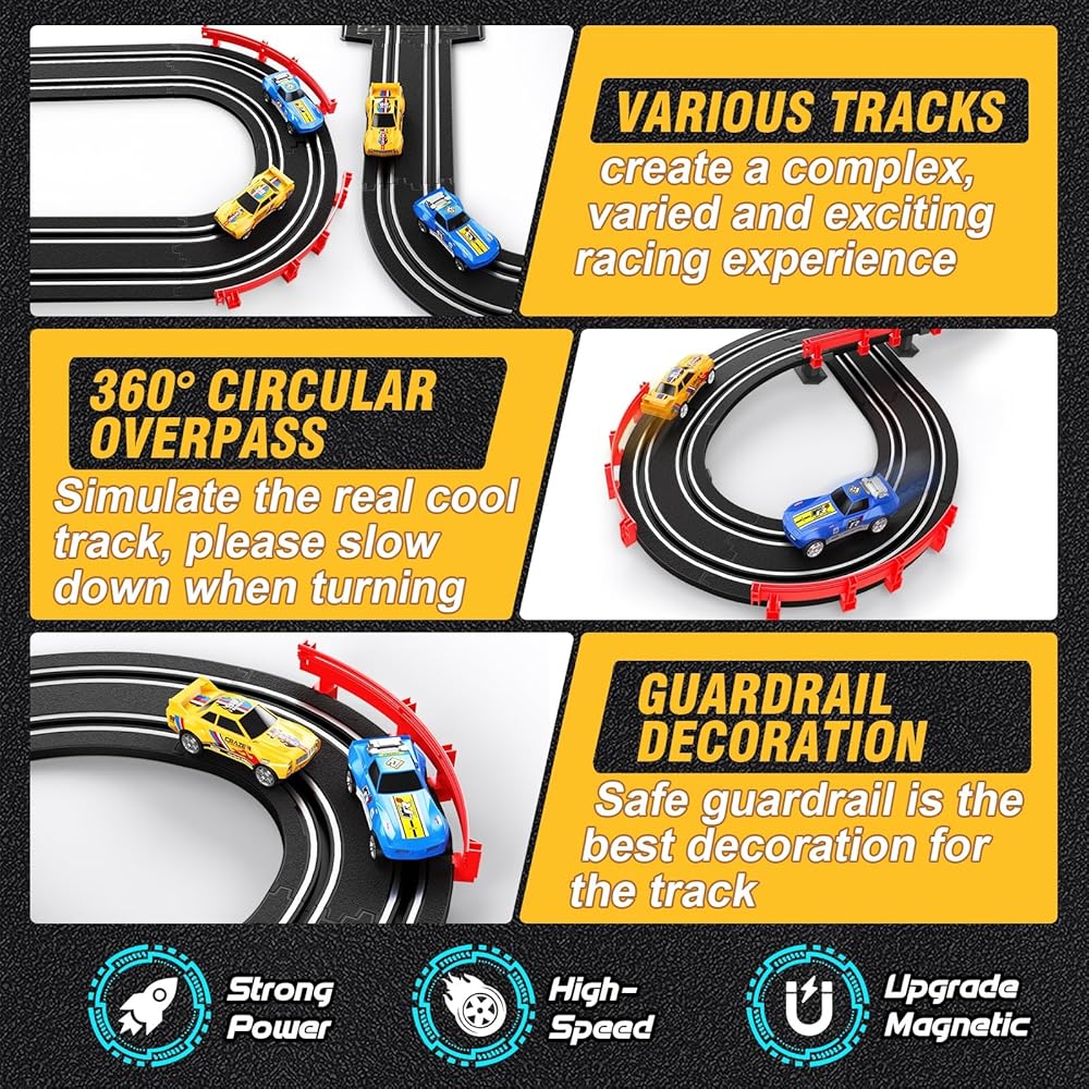 Slot Car Race Track Sets, Electric or Battery-Powered Dual Car Track Include 4 High-Speed Race Cars, Controllers, Checkpoint, Lap Counter, Toy Gift for Boys Girls Ages 4 5 6 7 8-12 Year Old Kid