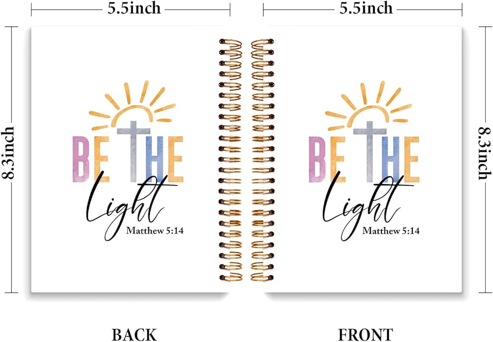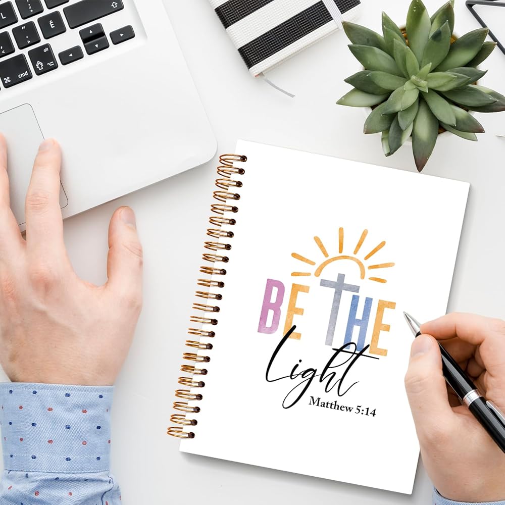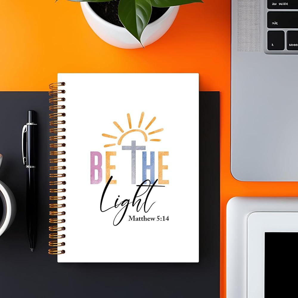 Christian Bible Journal Notebook for Woman Gifts, Religious Notebooks for Women Teen Girls College School Supplies Bible Study Journaling Spiral Notebook, Be the Light Matthew 5:14, 5.5x8.3