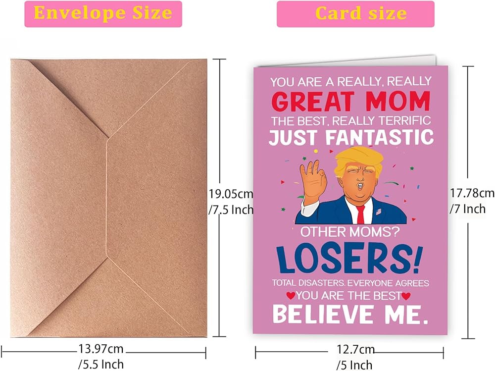 Funny Birthday Card for Mom, Mothers Day Card from Daughter & Son & Husband, Mom Birthday Gifts, Greeting Card=7in x 5in(Folded), Envelope = 7.5in x 5.5in