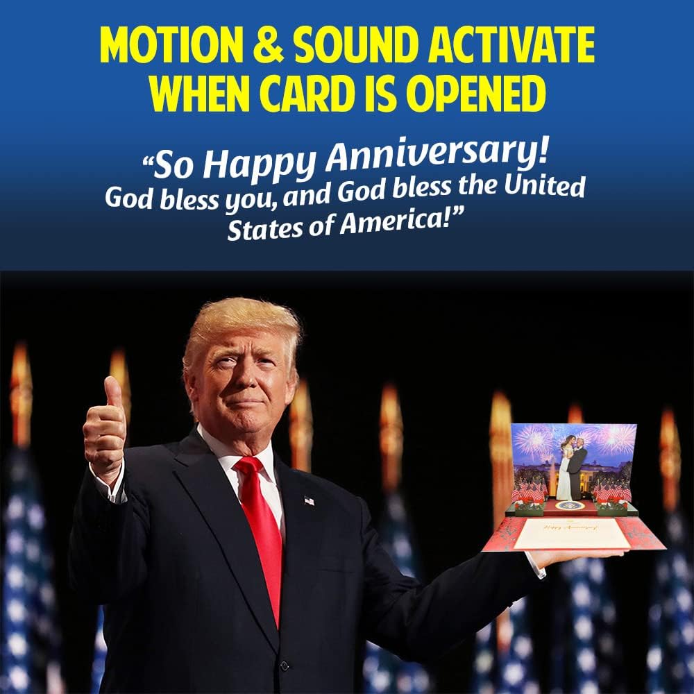 Trump Pop Up Anniversary Card with Real Voice, Lights & Music - 3D Scene Plays Happy Anniversary in Donald Trump's Voice - Funny Novelty Greeting Card for Couple, Husband & Wife (Dancing)