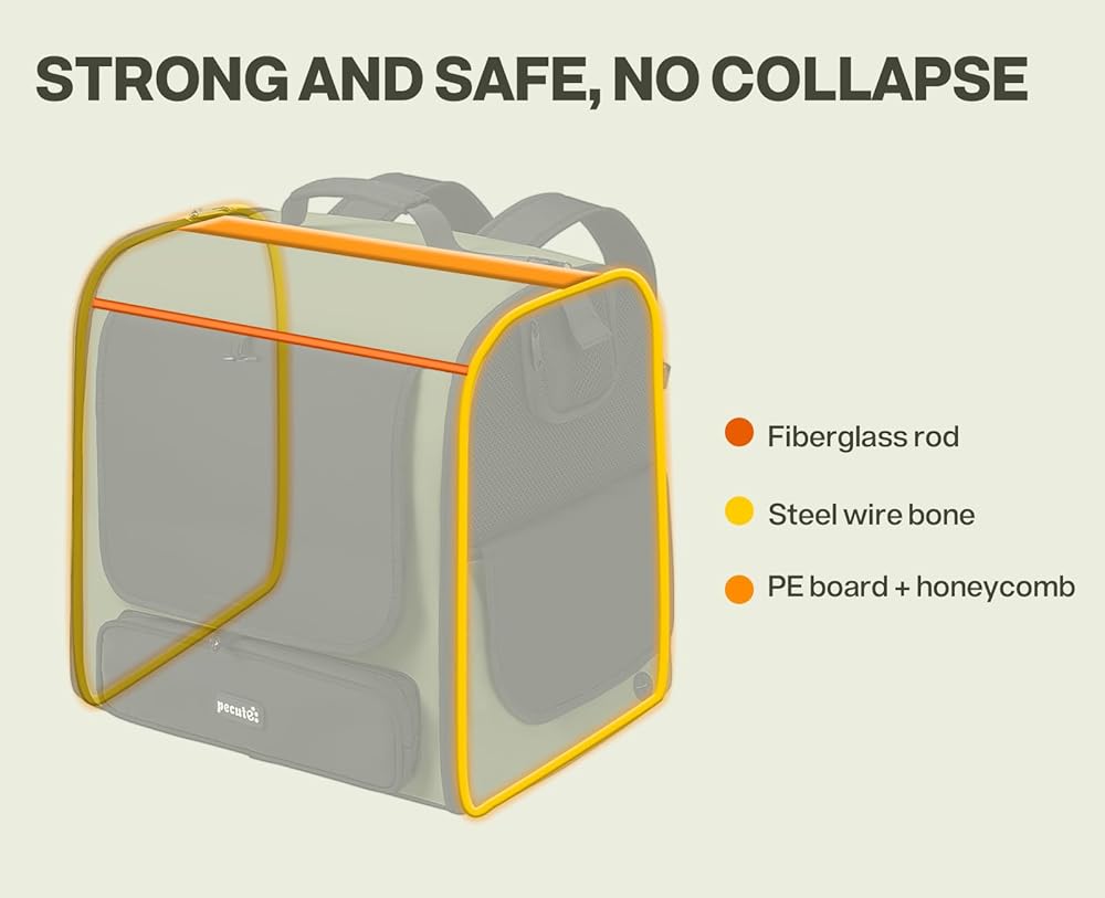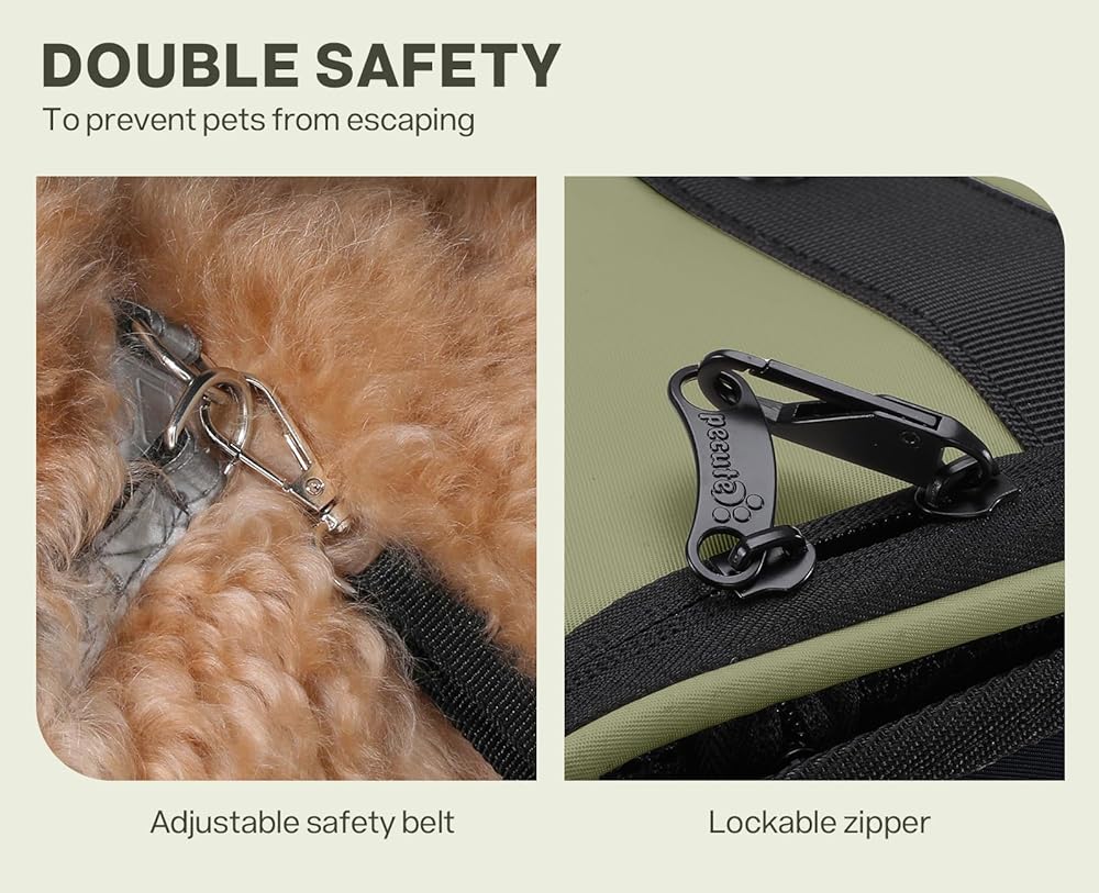 【Enhanced Safety Features】Designed with your pet's safety in mind, this cat carrier backpack features a reinforced PE board + honeycomb board top, built-in steel wires on both sides, and fiberglass rods for maximum durability. The lockable double zippers and included anti-escape leash ensure your pet stays secure, making this dog backpack ideal for even the most adventurous pets.