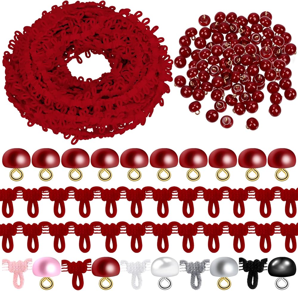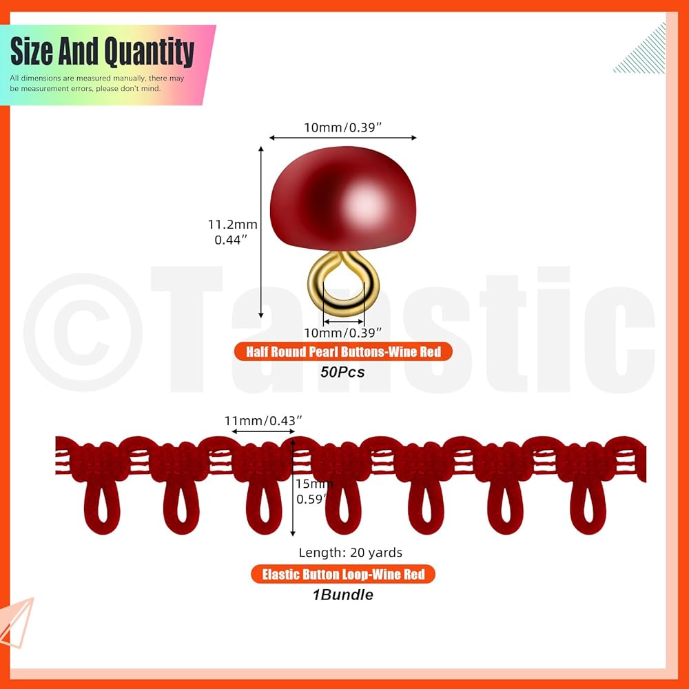 ✅ Our set contains 50pcs pearl buttons with 1pcs braid trim with elastic button loop to meet your usage needs.