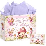 【What You Get】 The Fairy 1st Birthday Gift Bag set includes 1pcs gift bag, 1pcs greeting card, and 3pcs tissue paper; The Our little fairy is turning one greeting card can be written on the front or back with a message for a child's future, or your special message to give as a gift