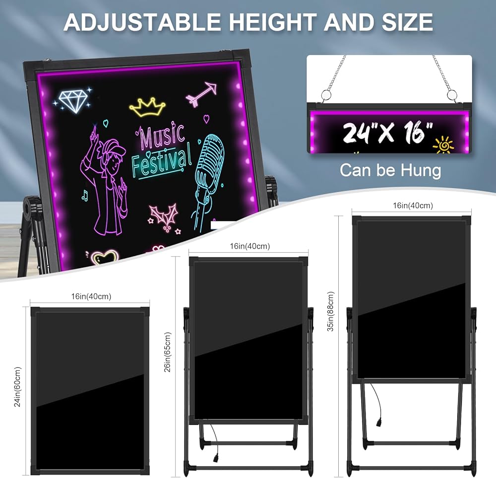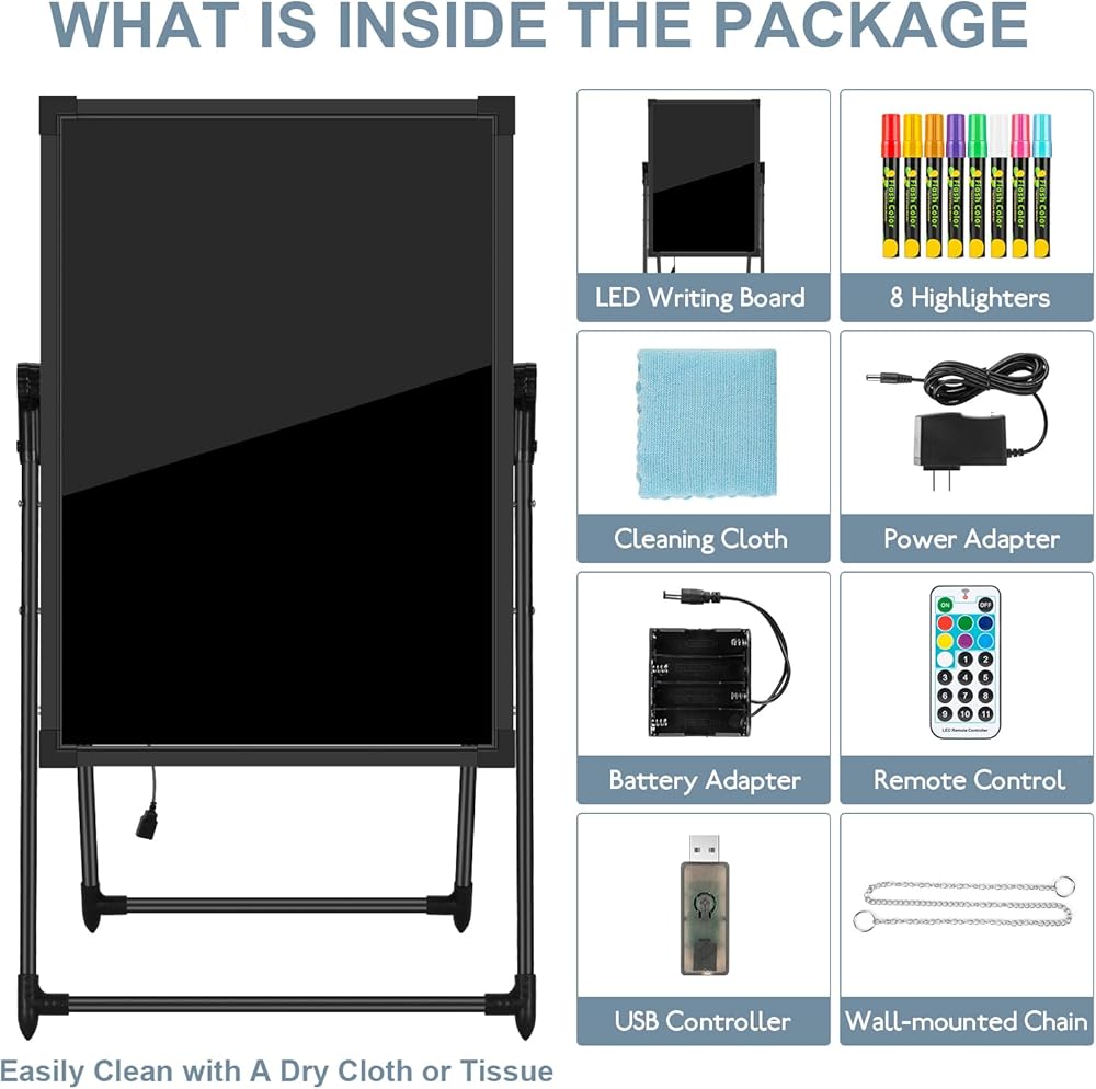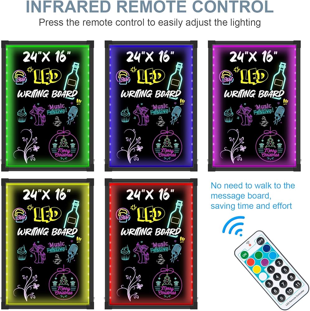 LED Message Writing Board, 24" x 16" Illuminated Erasable Neon Effect Menu Sign Board, with 8 Fluorescent Chalk Markers and Remote Control Drawing Board