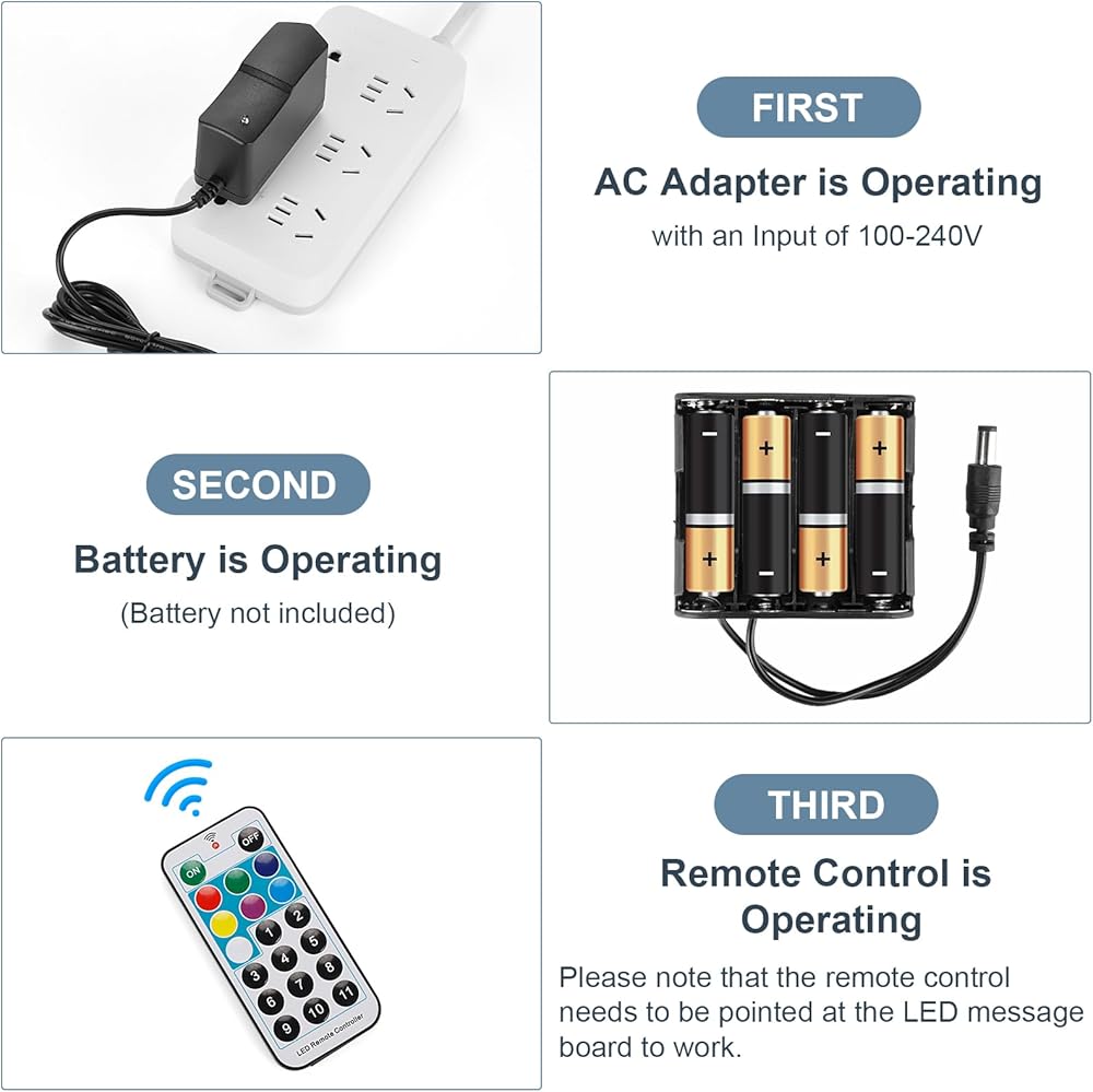 Infrared Remote Control --- LED illuminated menu board uses infrared remote control. Simply press a button on the remote to control the display effects of the LED message board, without needing to touch the screen directly.