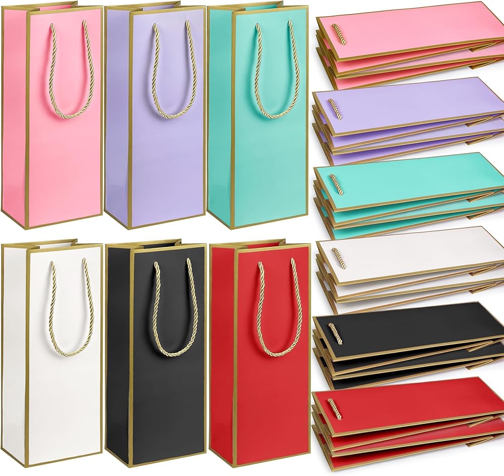 Material: These wine gift bags are made of kraft paper and feature ribbon handles, making them reusable and durable