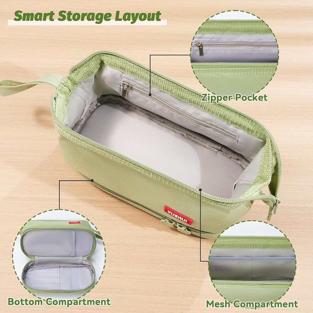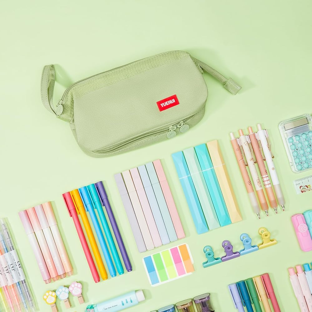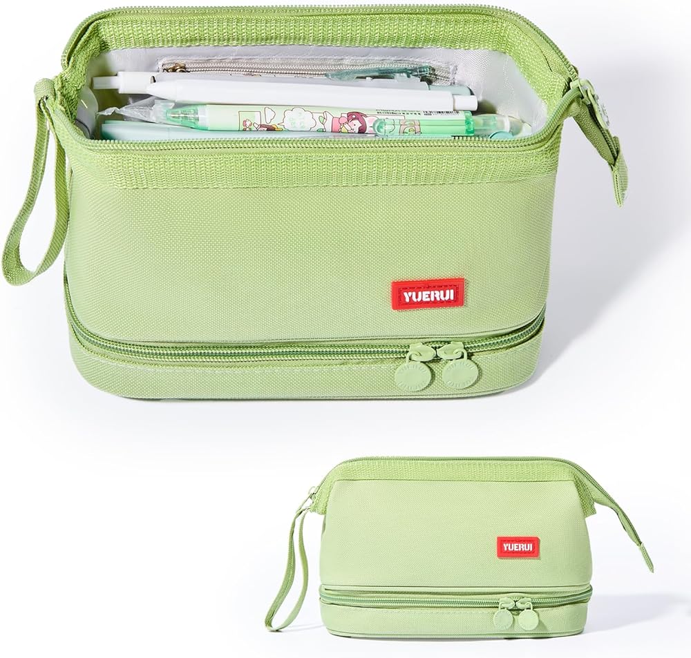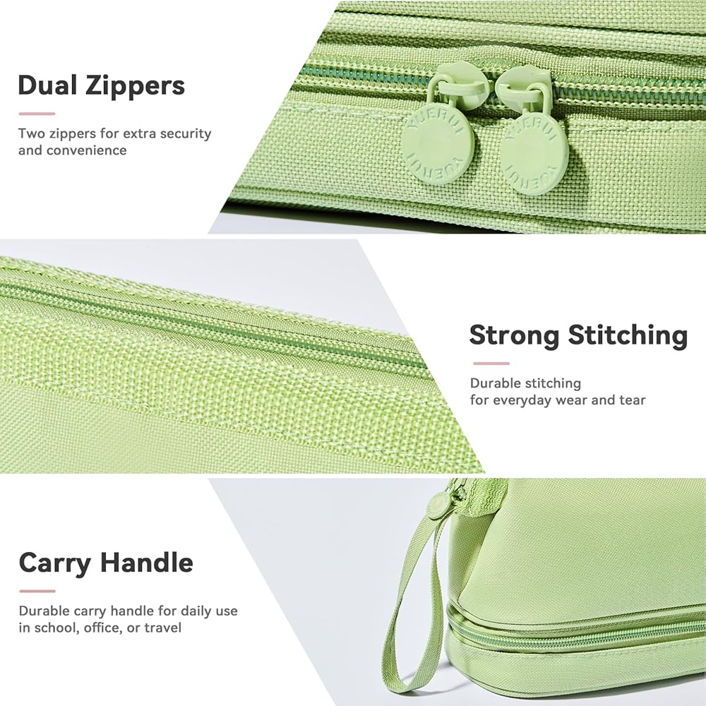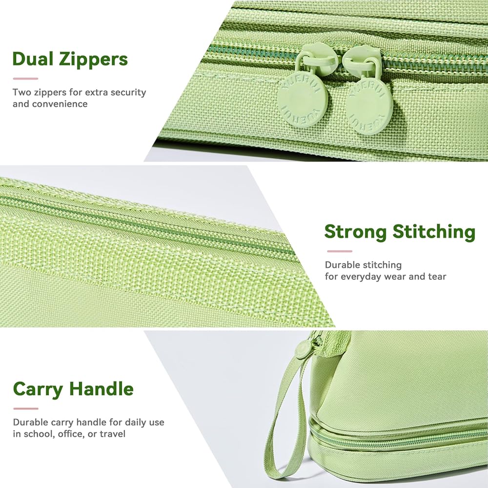 Pencil Case - 2-Layer Large Capacity Aesthetic Pencil Pouch with Strong Zipper, Handheld Stationery Organizer Pen Case with Compartments for College, office, Travel, for Women Men(Green)