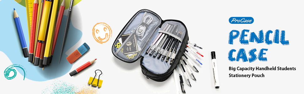 ProCase Pencil Bag Pen Case is designed to store and organize pens, pencils, gel pens, markers, erasers, scissors and other stationeries. Low-profile design and color, ideal little pouches for people of all ages. Versatile and multi-functional, also can be served as make-up pouches, glasses cases and accessory bags, meeting your needs in the maximum extent.