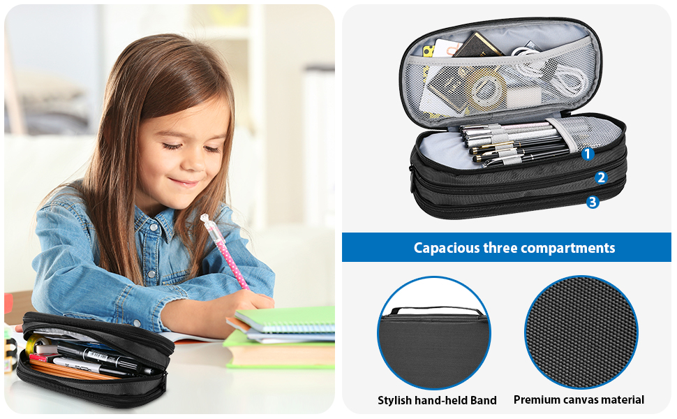 🎓 『Large Capacity』Capacious three compartments with 9.25×4.53×3.15 inches in dimensions to perfectly store your stationery items or other gadgets like erasers, sticky tape, rules, sharpener, post-it notes, sticker, clips, etc.