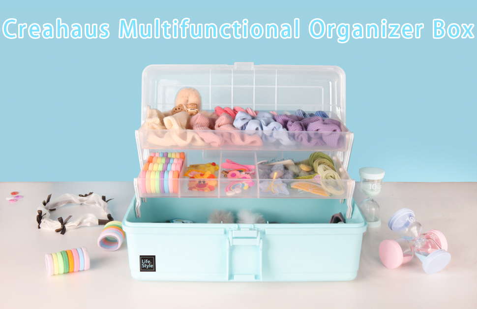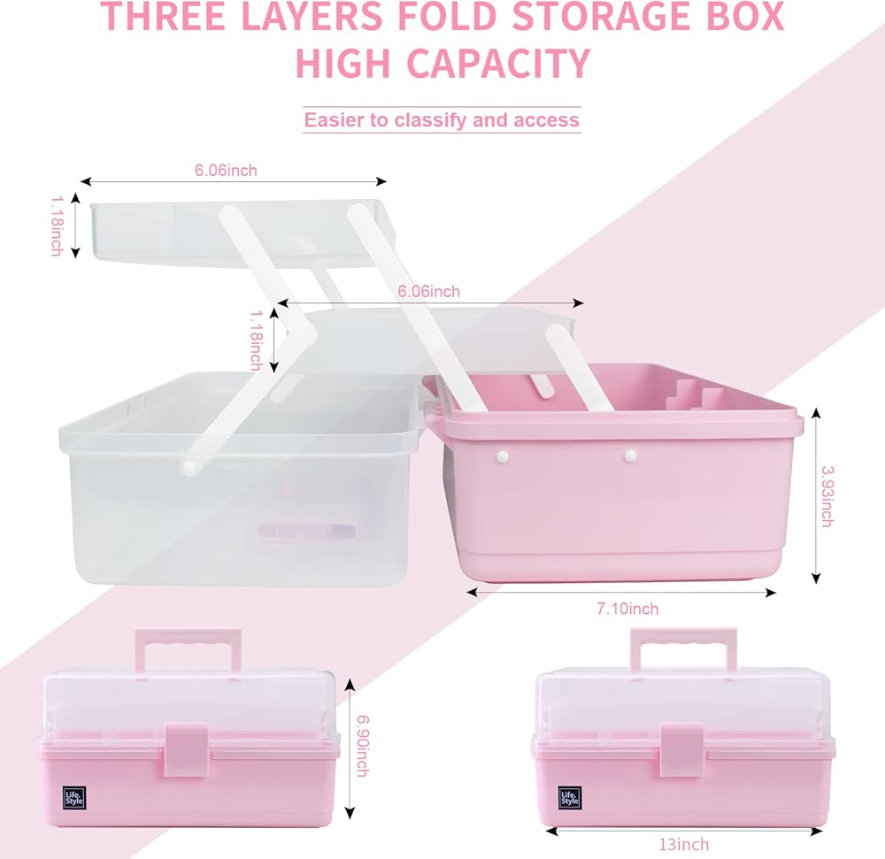 Greater Capacity: 13" storage organizer box size: 13" x 7.1" x 6.9", build in 3 layers with 2 trays, each tray also has compartments, which perfectly help to arrange items and this zone is enough to orderly store kids toys DIY crafts, sewing staffs etc.