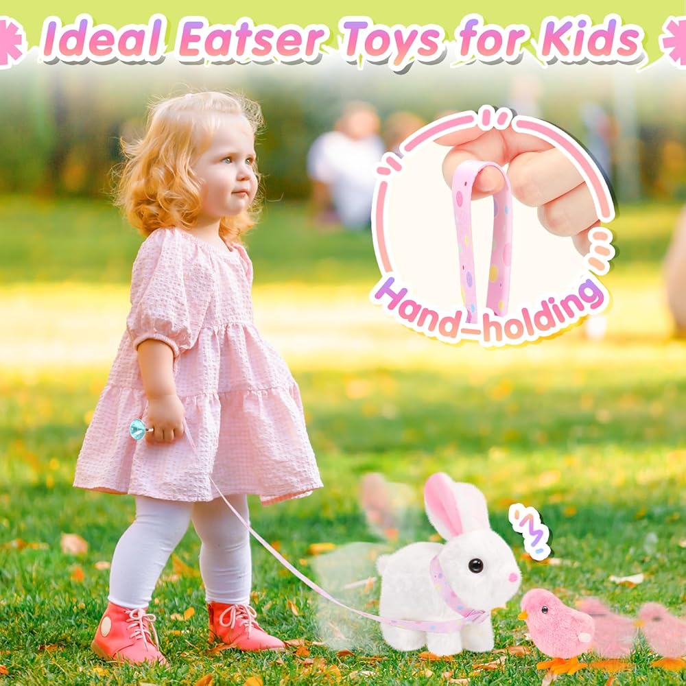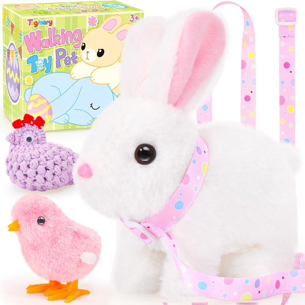Tagitary Easter Plush Toys Interactive Bunny for Kids That Wiggling Ears,Hopping,Twitching Nose with Sounds,Realistic Rabbit Toy with Leash and Wind Up Toys,Easter Birthday Gift for Toddlers