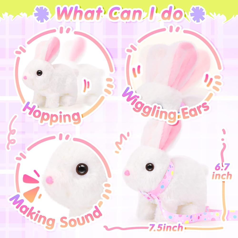 Lifelike Bunny Shape: Not only does it have a vivid and cute bunny shape, it can also jump, twitch, swing its ears, and make sounds like a real bunny. It can stimulate children's imagination, cultivate love, and become the child's closest partner