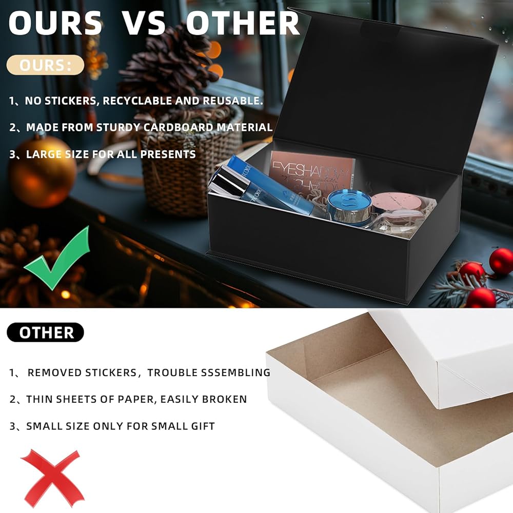 Upgraded Embedded Closure Design: This empty gift box is design with no magnetic closure on two sides, embedded closure make the gift box open and close repeatedly easily. It is easy to clean, only need wipe gently with dry cloth to restore the bright. The special embedded closure design can make your gift look more advanced and beautiful.No need to suffer from magnetic problem to ruin your gift from now on!