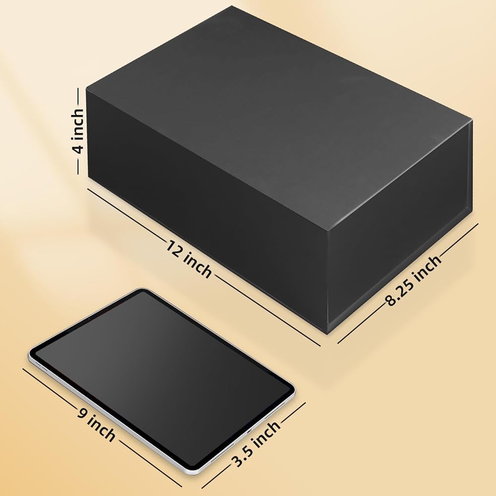 High Quality Material: This gift box is made of premium recyclable paper material with matte surface. Sturdy and beautiful. No tears. Durable, gift box size: 12" x 8.25" x 4" (1 set).This rectangle white foldable box is great as everyday storage box to hold clothing, jewelry, photos, perfume, shoes, toys, etc.