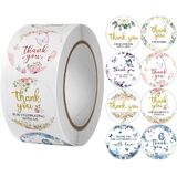 500 Pcs Thank You Stickers 8 Designs Rose Floral 1 Inch Thank You Sticker for Packaging Thank You Sticker for Small Business Thank You Label Baking Packaging Envelope Seals (Purple)