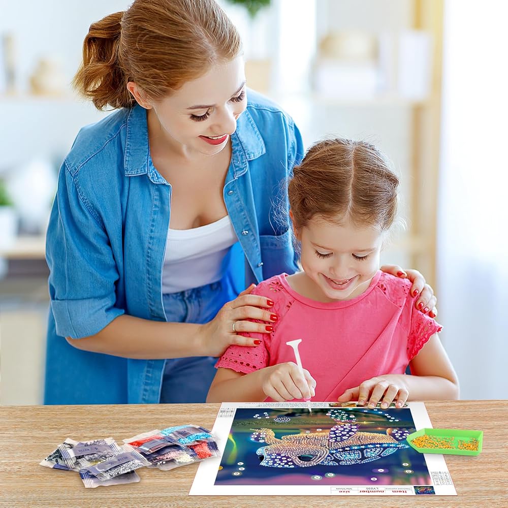 • Rich Colors: Each diamond has strong three-dimensional effect, no odor, rich colors and will not fade.The special diamond art includes a hanging chain and a complete set of production tools.