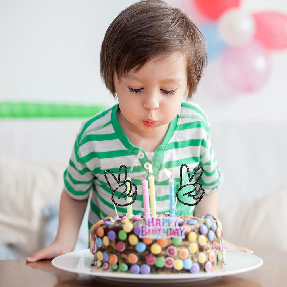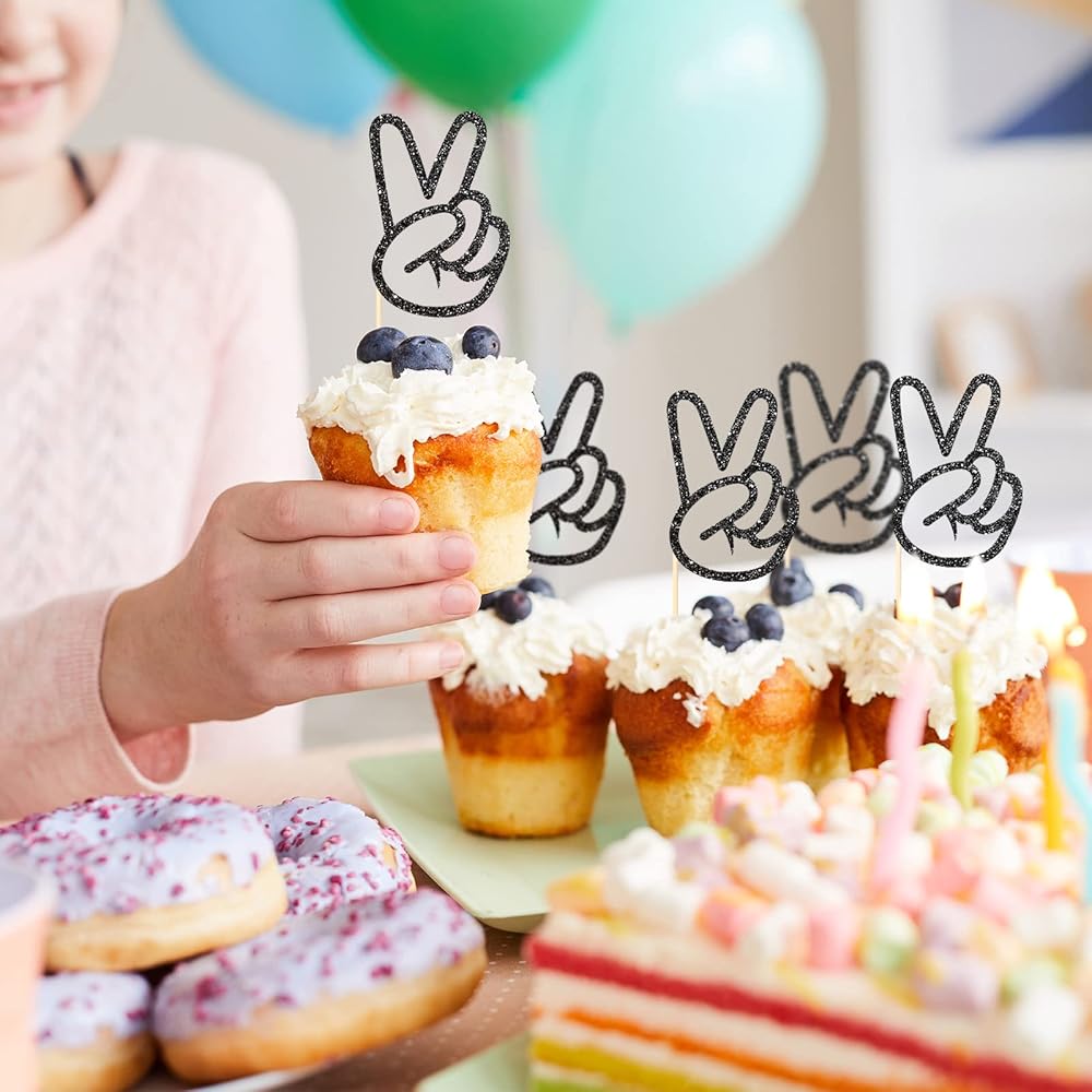 Glitter Design: these decorative cupcake toppers are designed with funny peace sign, which not only can be applied to stand for peace hand signal, but also can be applied to represent number 2, adopted glittery design, look shiny under the light, making your cakes or cupcake become delicate and delicious