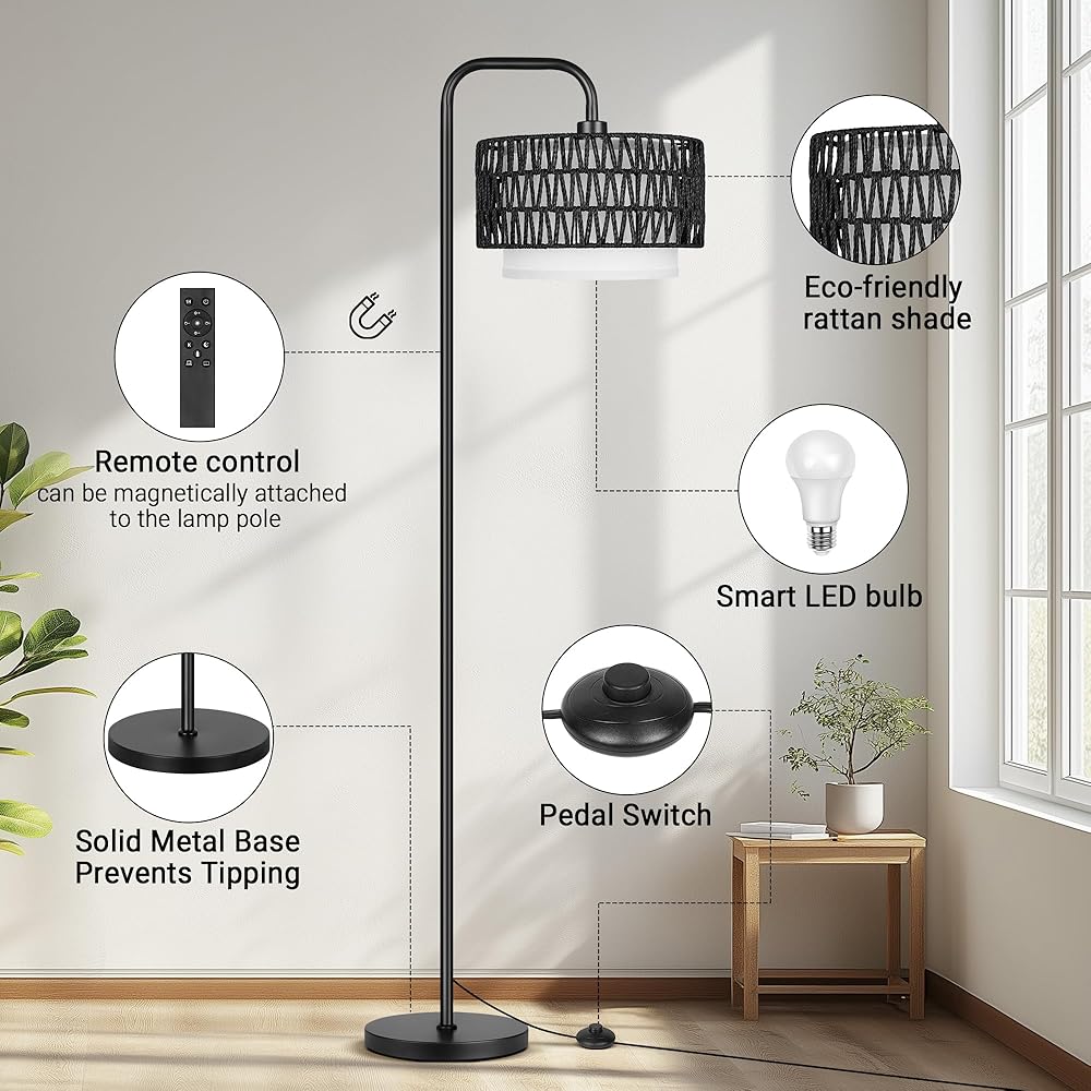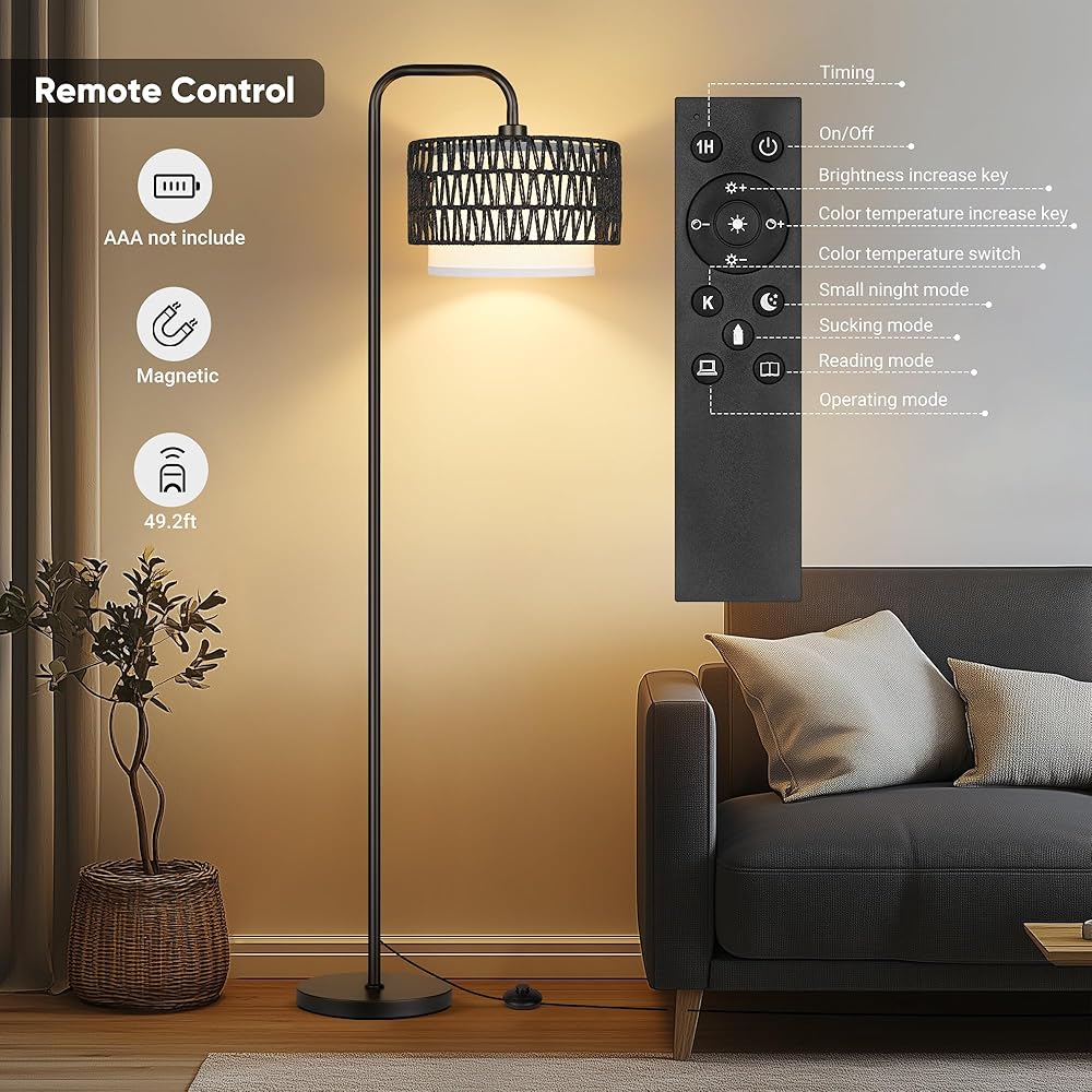 Pedal Foot Switch & Remote Compatible: Farmhouse floor lamp is controlled by pedal foot switch and 6 feet power cord, it allows your foot to tap it on/off and long power cord support to place the boho floor lamp to the suitable position. To keep pace with smart lifestyles, this living room lamp is also come with remote control (AAA batteries not included) to change color temperature and diversified lighting modes. Enjoy a more intelligent experience in life, also a great choice for warm gifts!