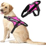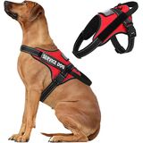 voopet Dog Harness Medium Sized + ID Card Pocket + 7 Patches, No Pull Adjustable Pet Dog Vest Reflective Breathable Dog Harness with Soft Padded Handle for Training Walking Easy Control